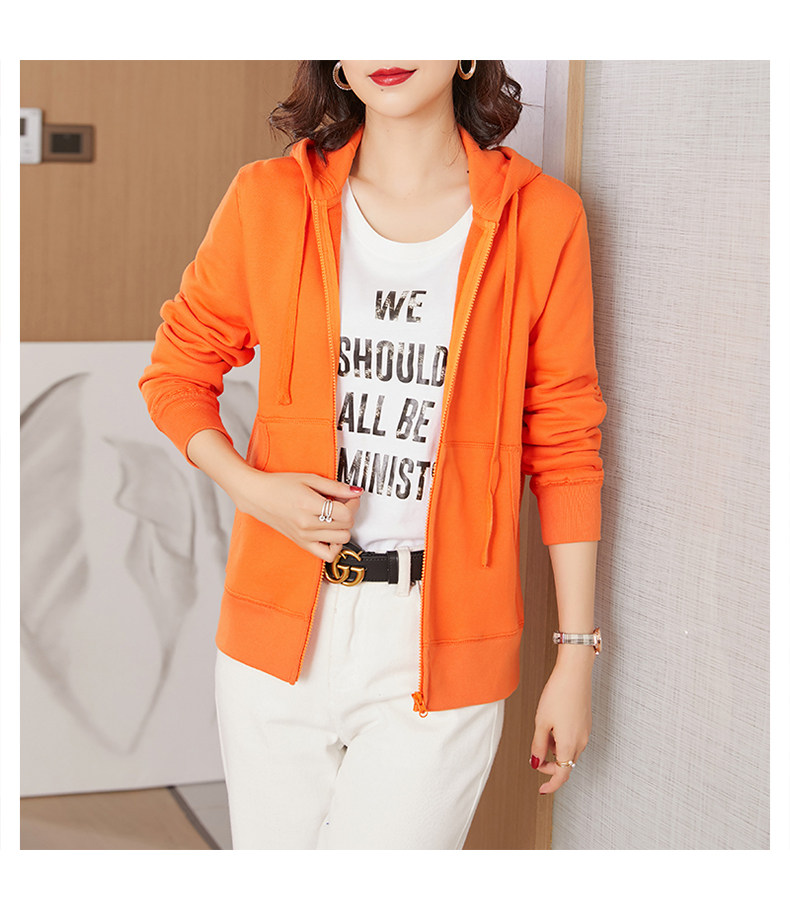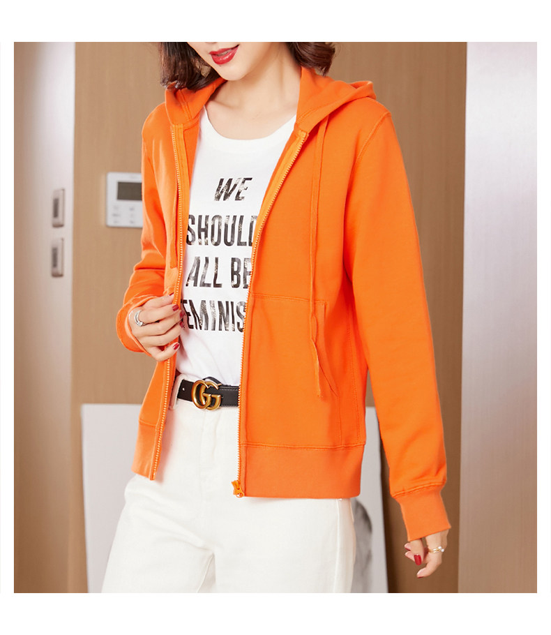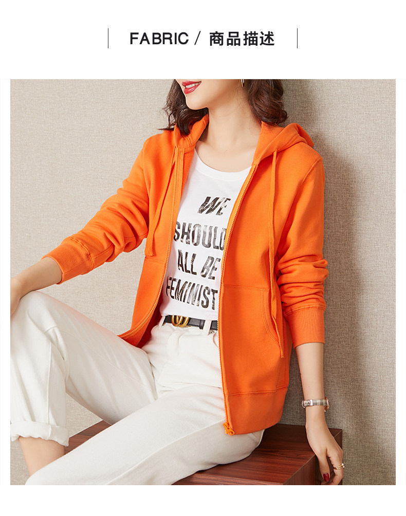 Спортивный оранжевый кардиган для отдыха, хлопковая оранжевая толстовка с капюшоном с молнией