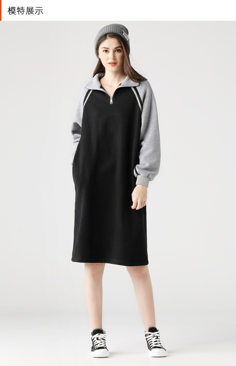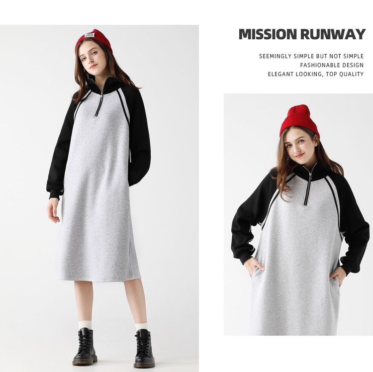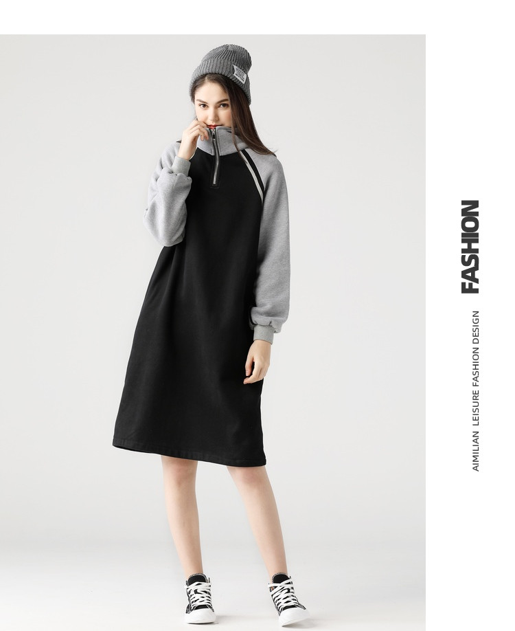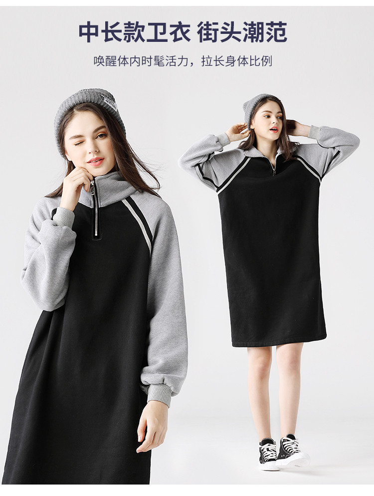 艾米恋 Длинная толстовка, платье, утепленные спортивные джинсы с начесом, средней длины, 2020, в корейском стиле