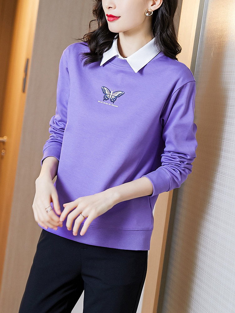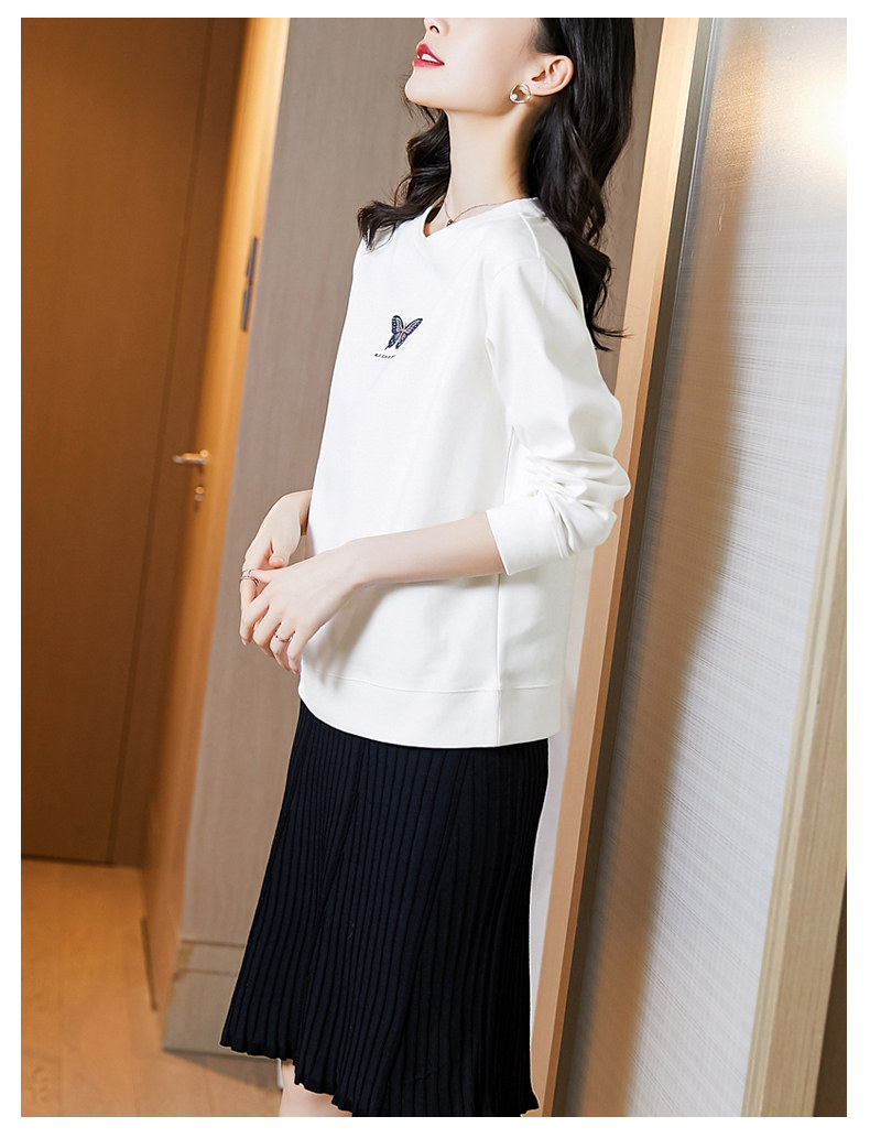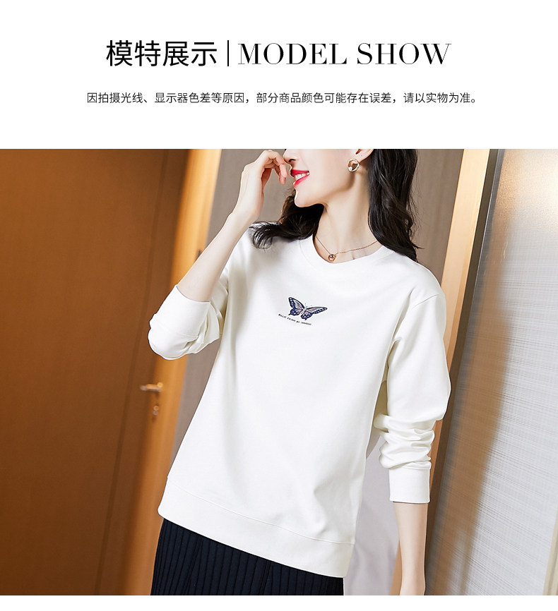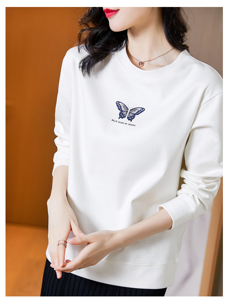 Tide, белый осенний тонкий модный лонгслив с круглым воротником, коллекция 2022, свободный крой