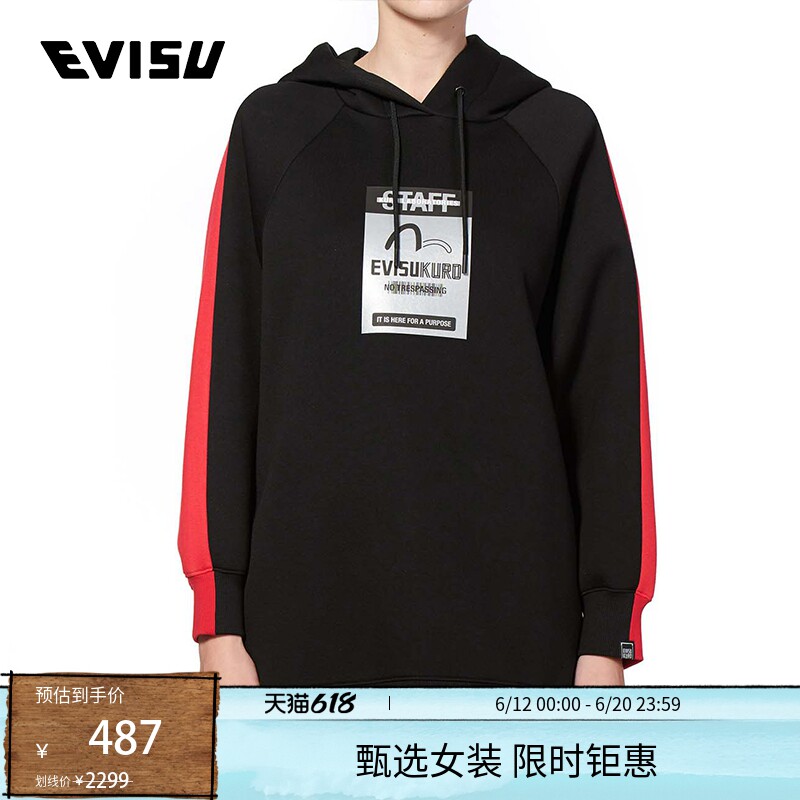 EVISUKURO женская черная свободная толстовка с длинными рукавами и силиконовым принтом в стиле пэчворк с капюшоном для женщин