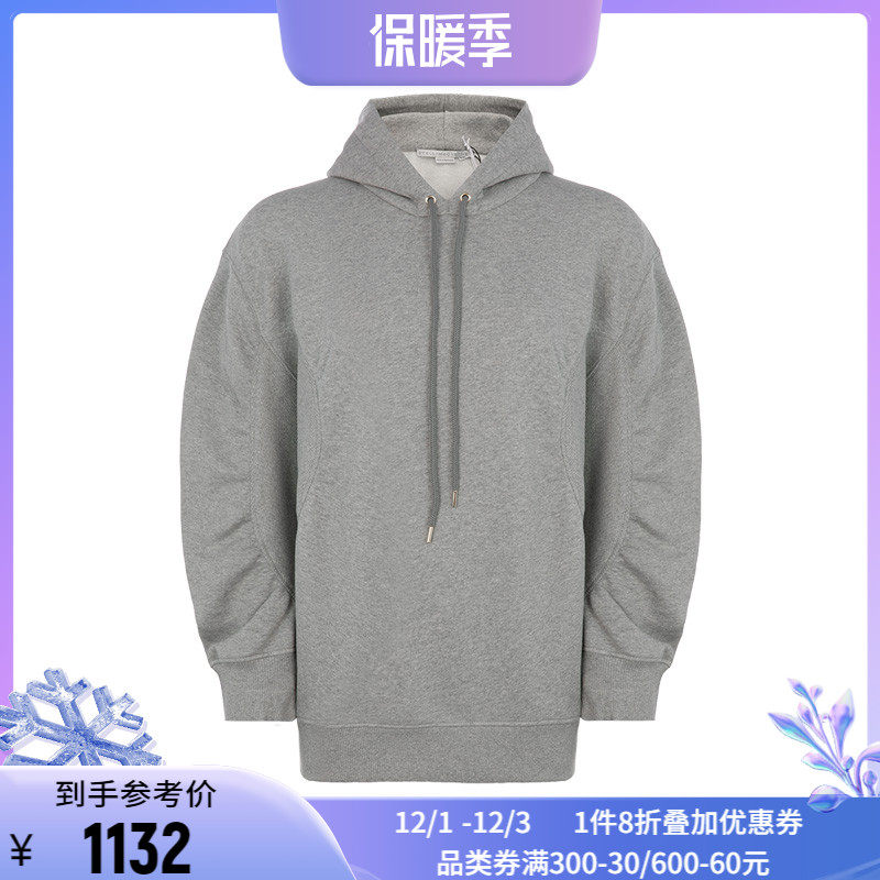 Stella McCartney Серый хлопковый рукав плиссированный дамы повседневный свитер с капюшоном