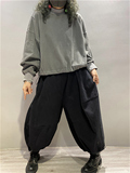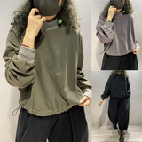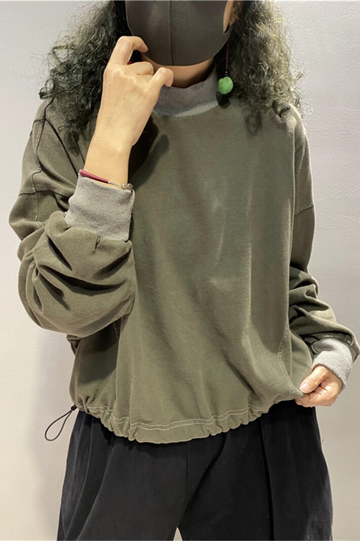 Хлопковая осенняя толстовка, европейский стиль, оверсайз, в западном стиле, высокий воротник, на шнурках
