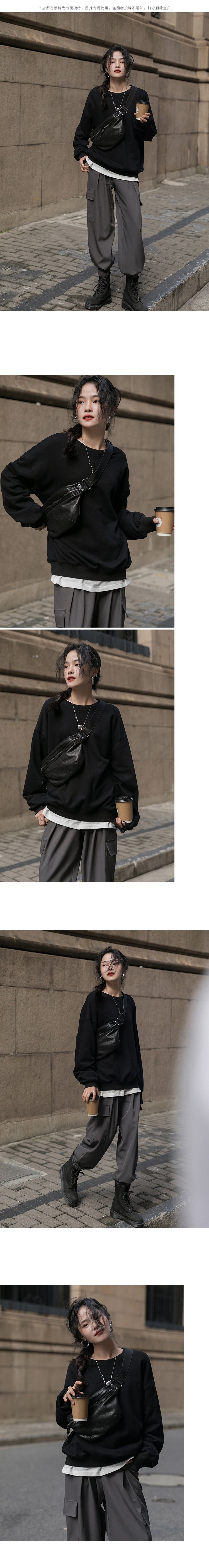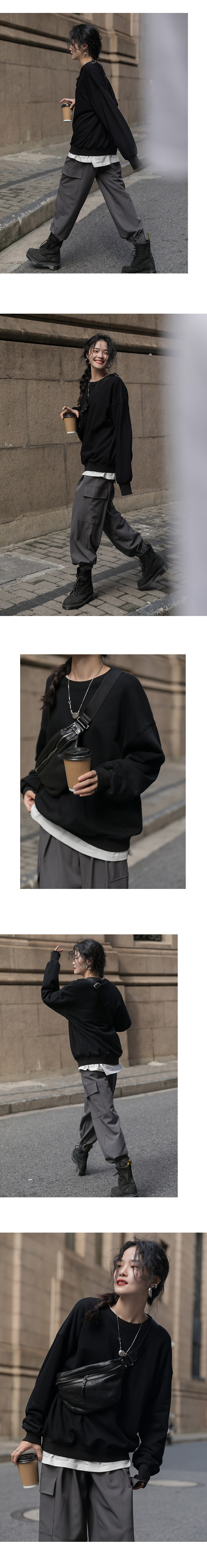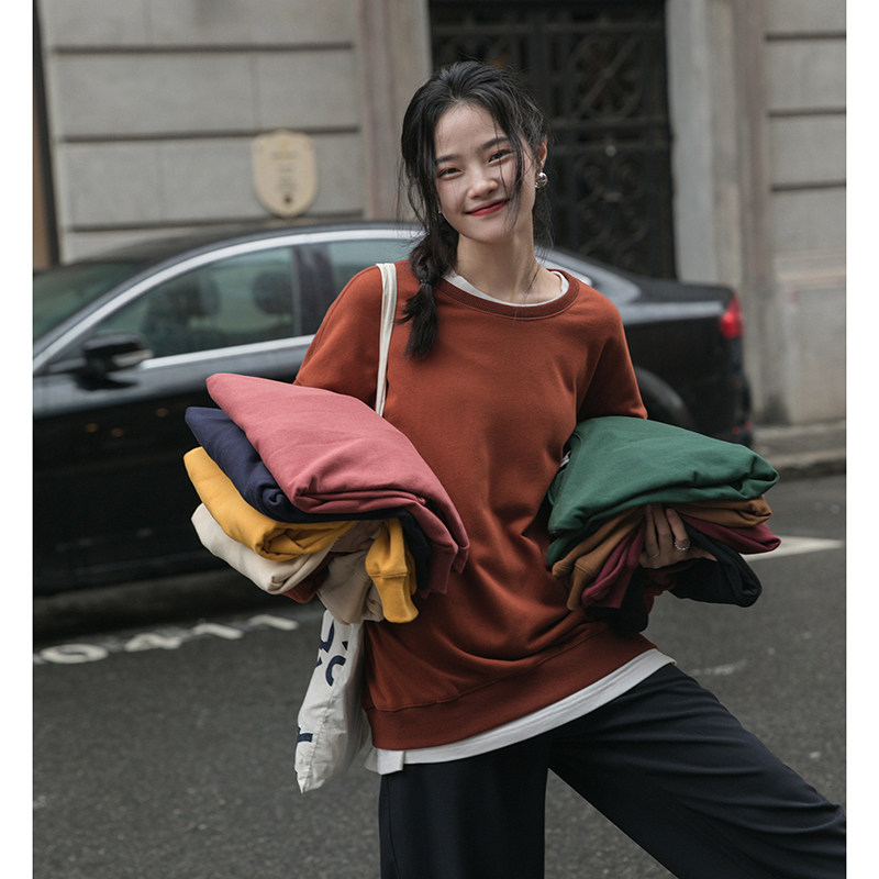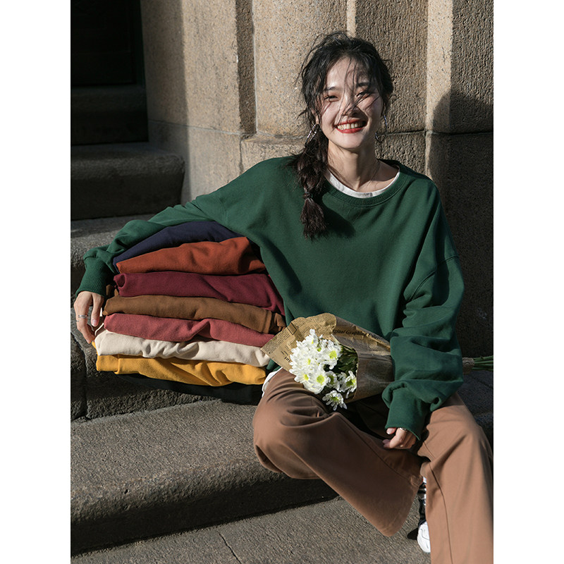 Черная демисезонная утепленная толстовка с круглым воротником, зеленый лонгслив, оверсайз