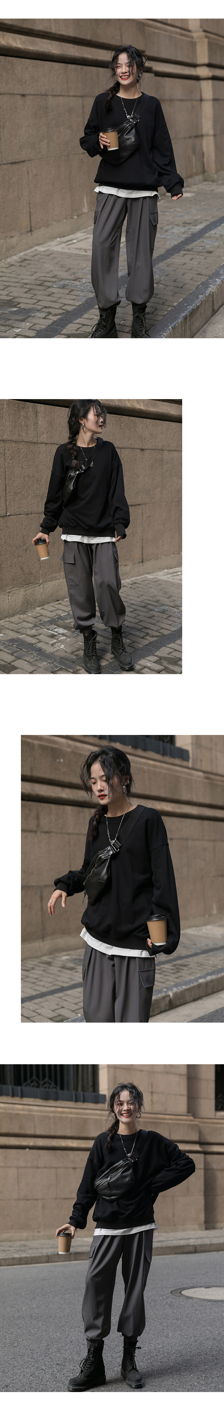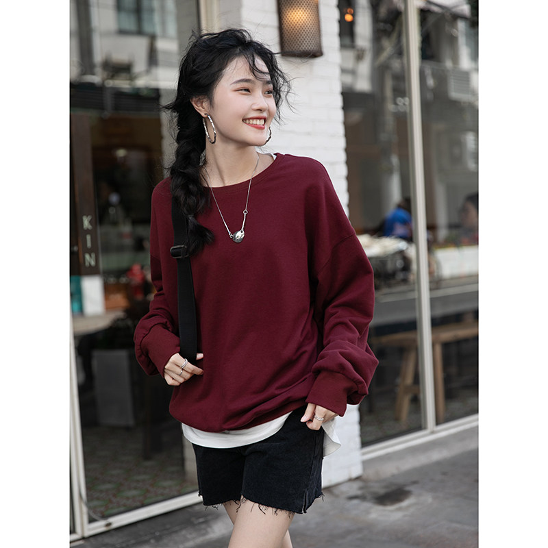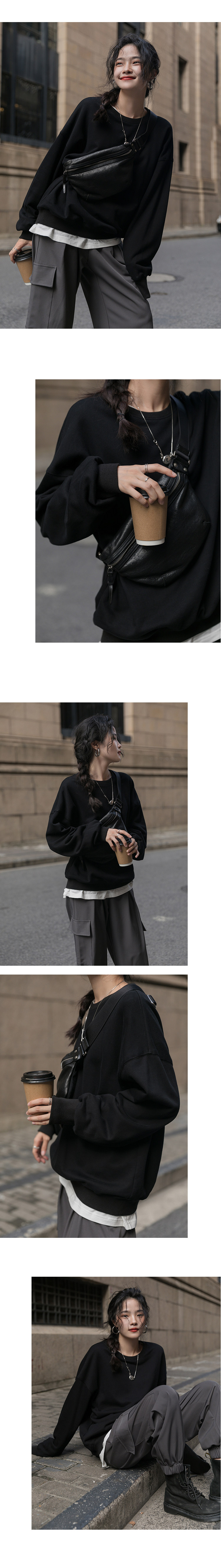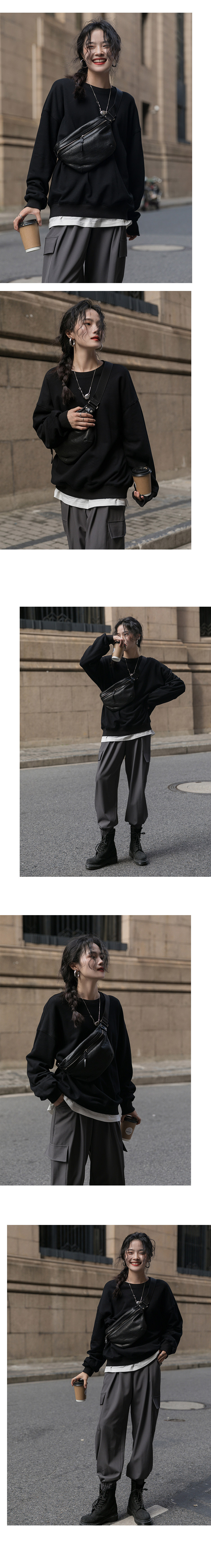 Черная демисезонная утепленная толстовка с круглым воротником, зеленый лонгслив, оверсайз