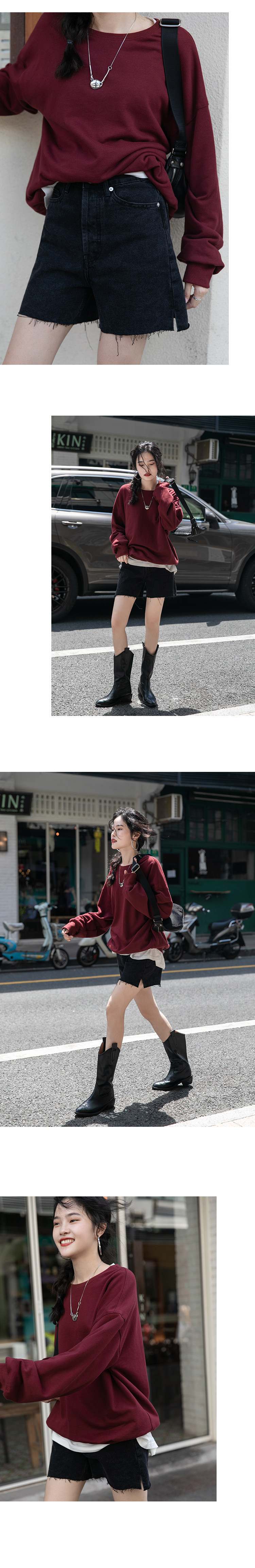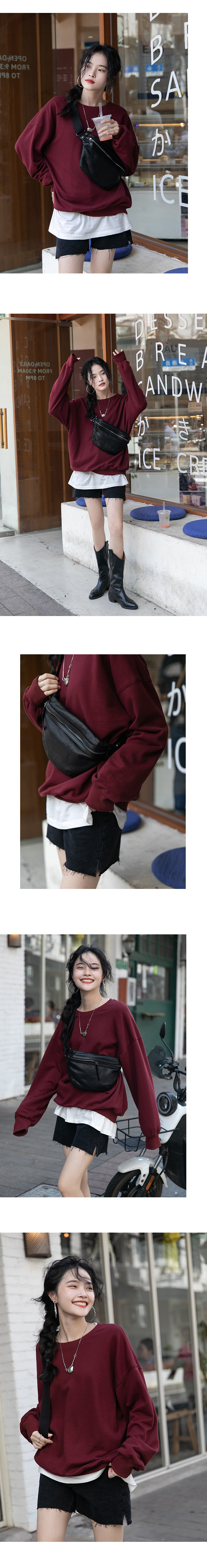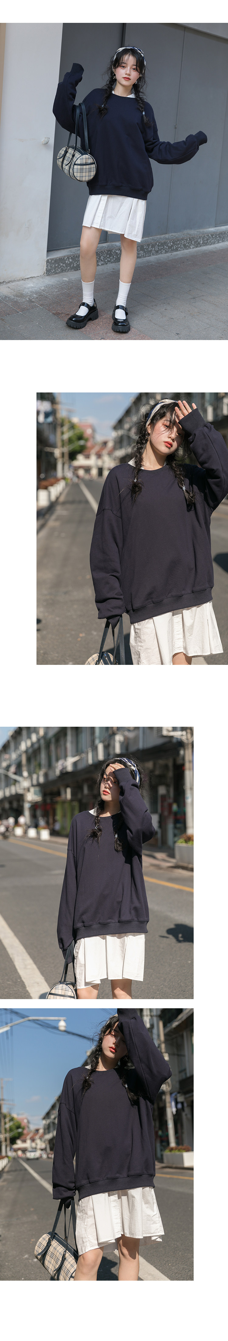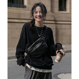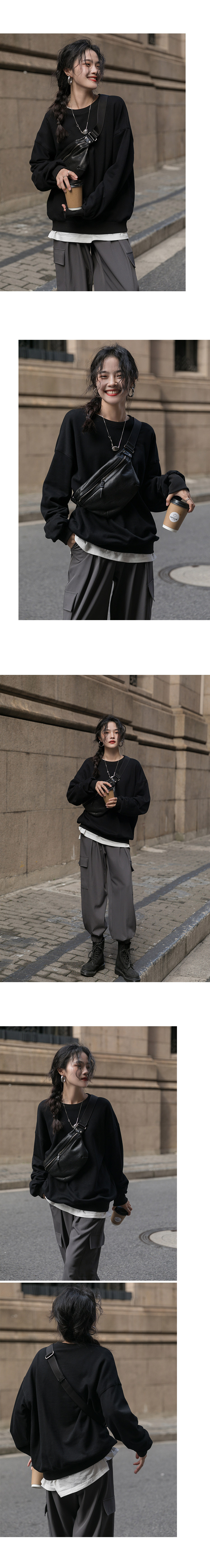 Черная демисезонная утепленная толстовка с круглым воротником, зеленый лонгслив, оверсайз