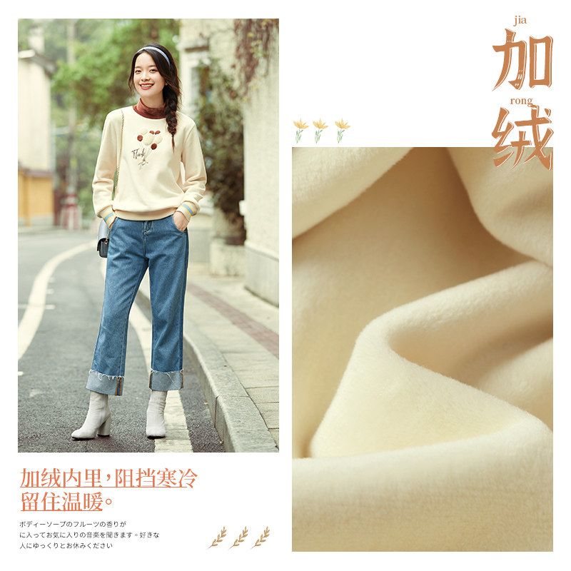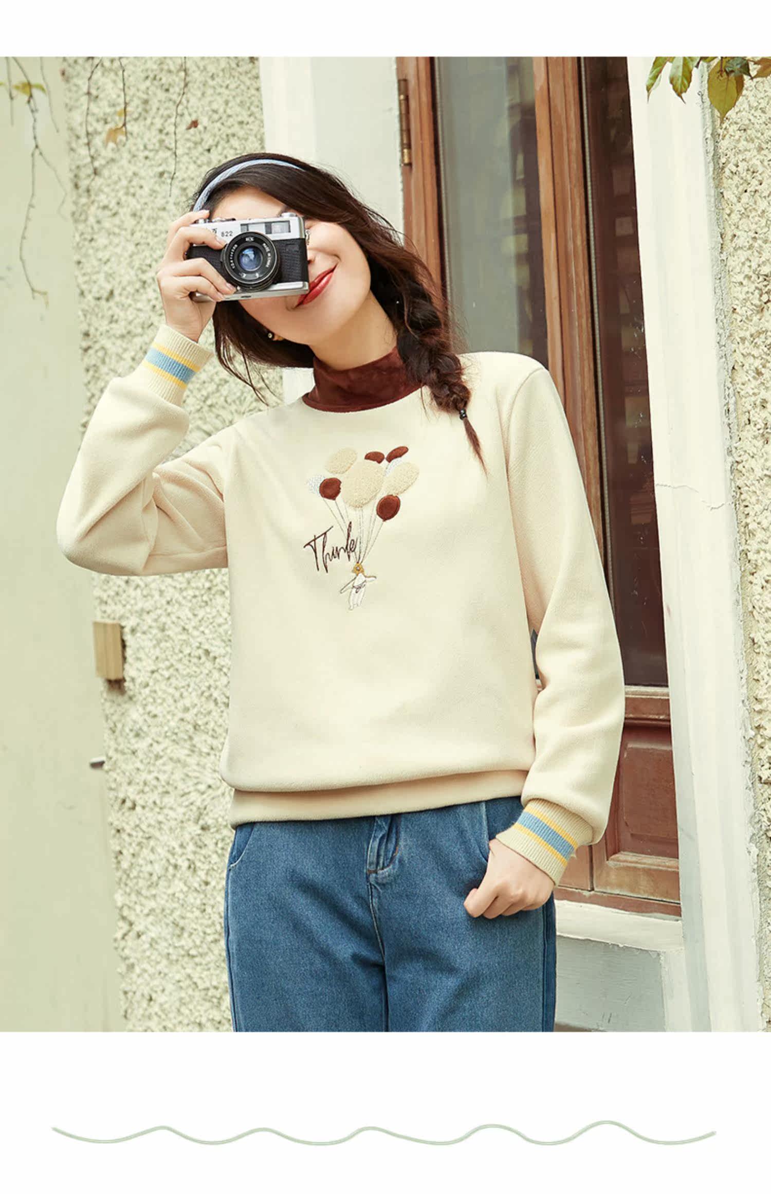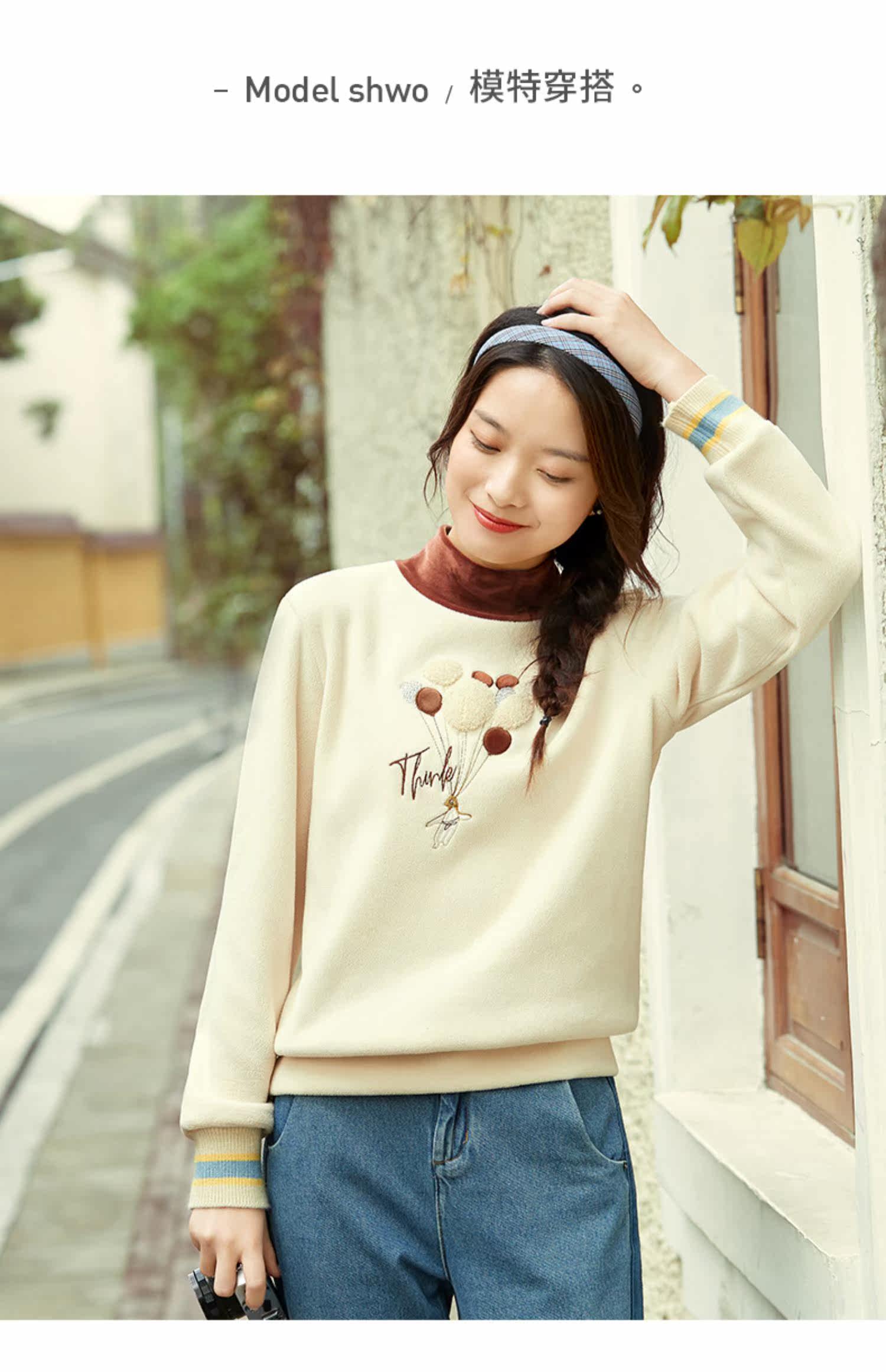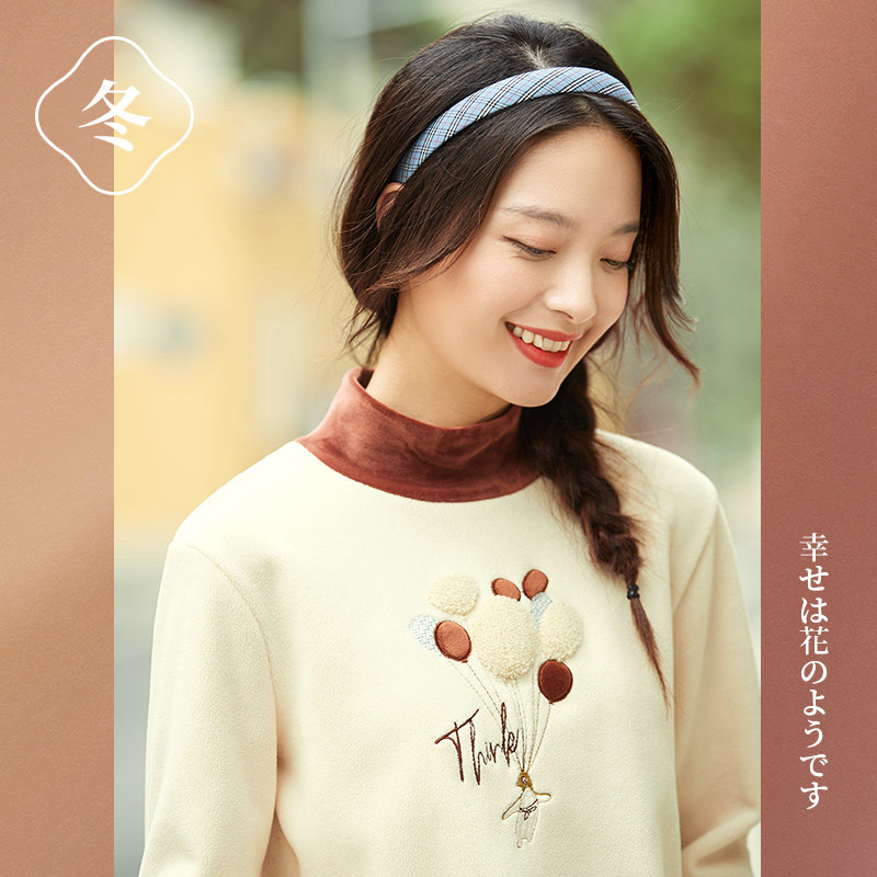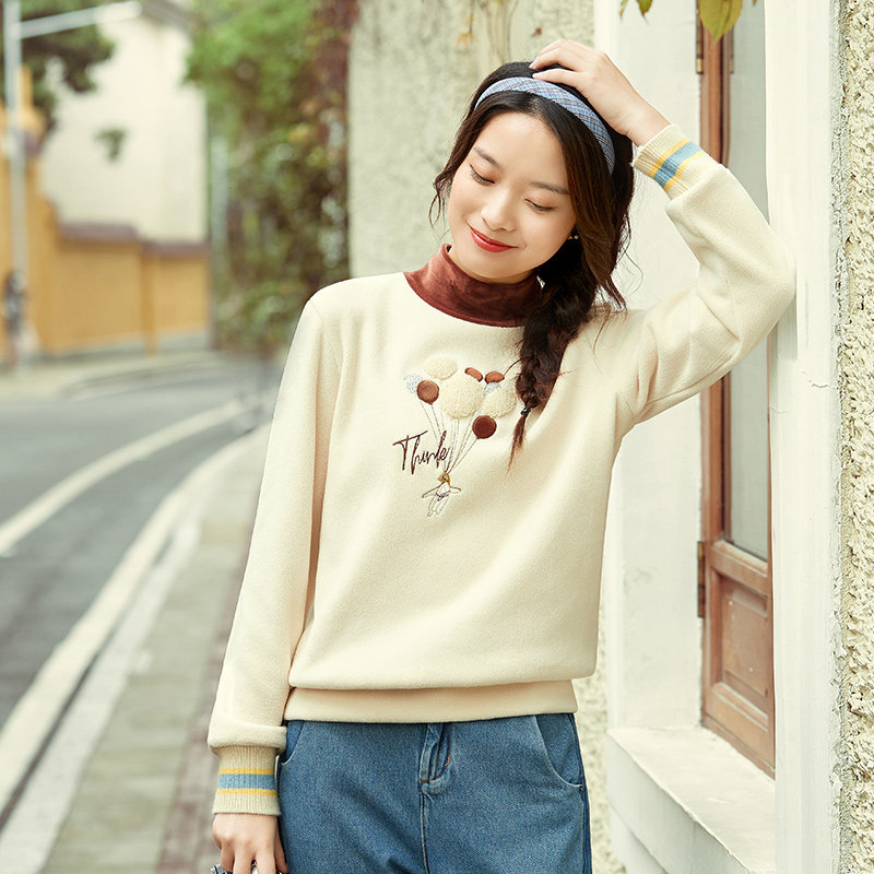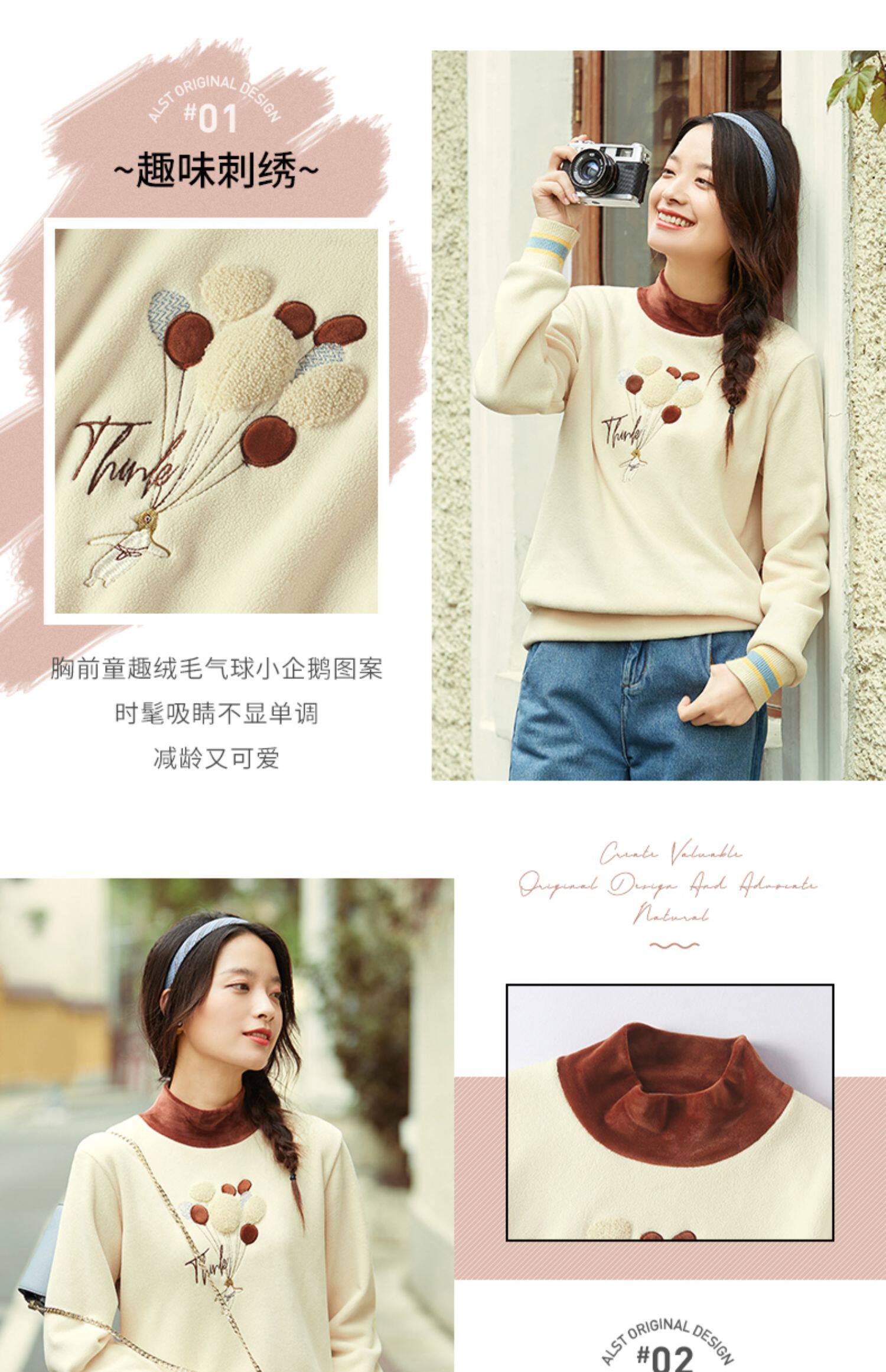 艾路丝婷 Утепленная толстовка, пуховик, базовая рубашка, с вышивкой, коллекция 2023, высокий воротник, увеличенная толщина, оверсайз