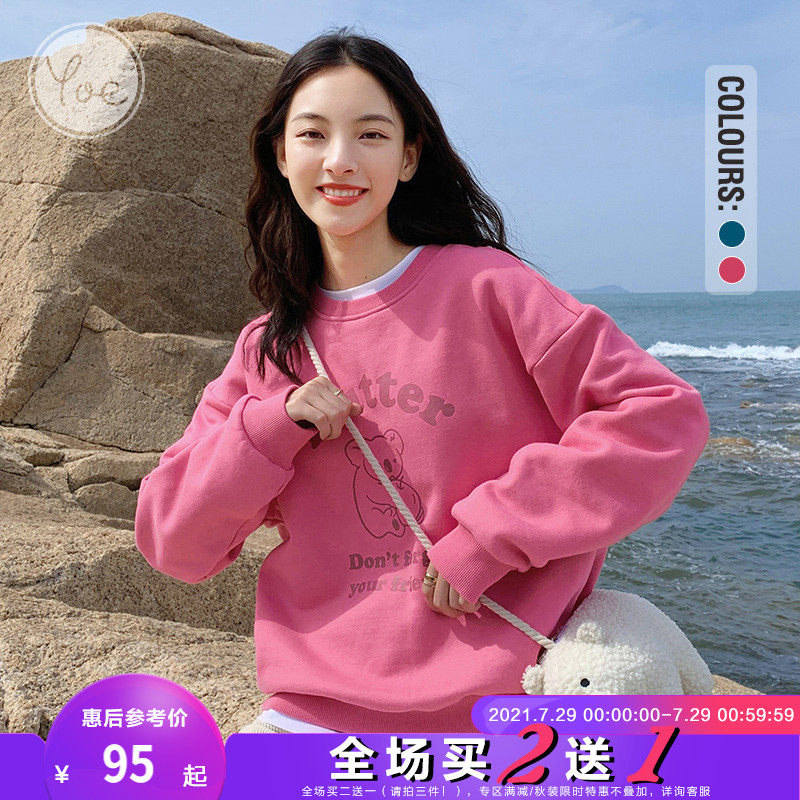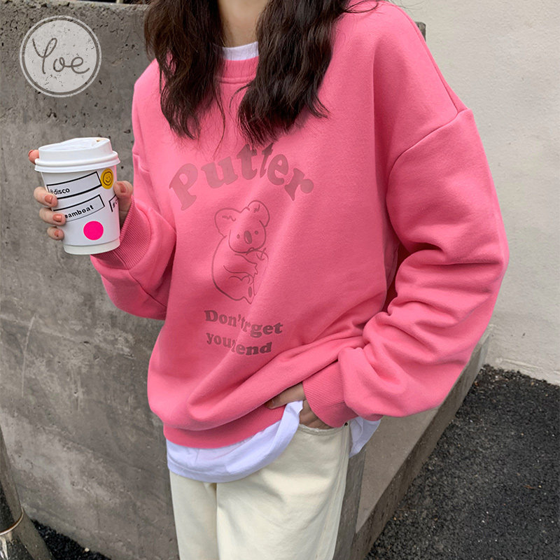 Мультяшная весенняя красная толстовка с круглым воротником, в корейском стиле, коллекция 2021, в западном стиле