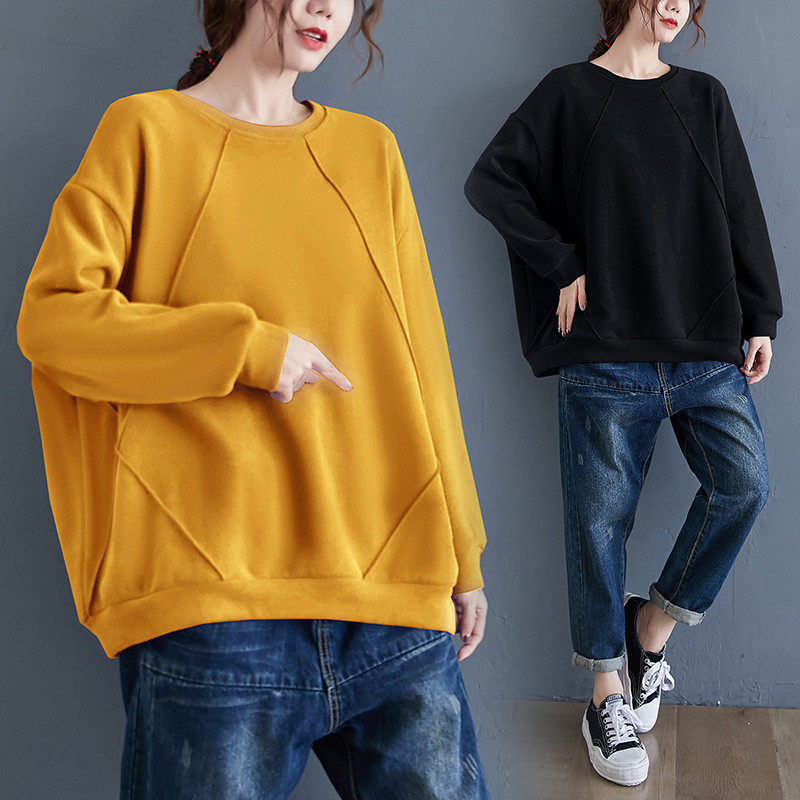 Демисезонный лонгслив с круглым воротником, большой размер, в корейском стиле