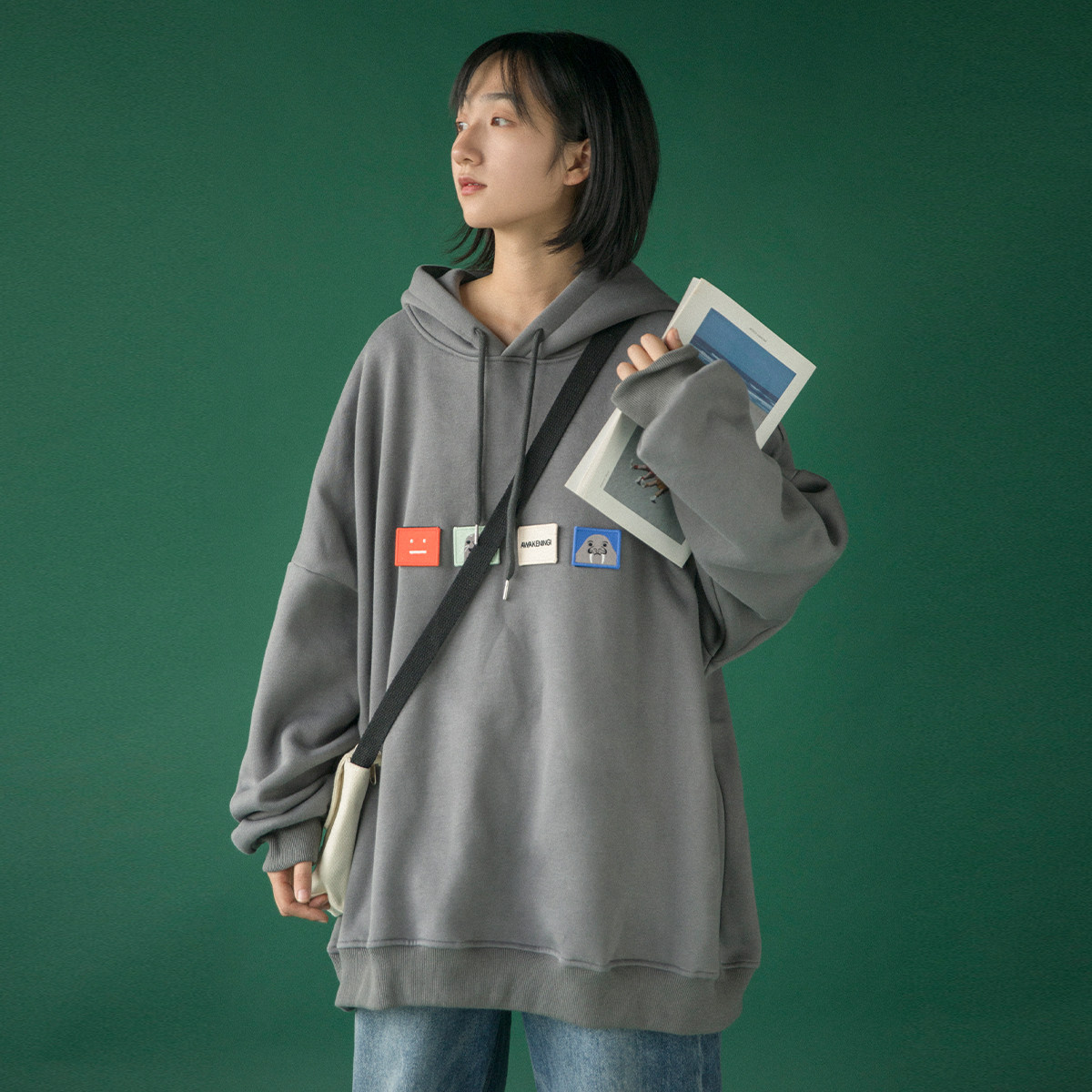 Демисезонная ретро толстовка, лонгслив с капюшоном, 2020, в корейском стиле