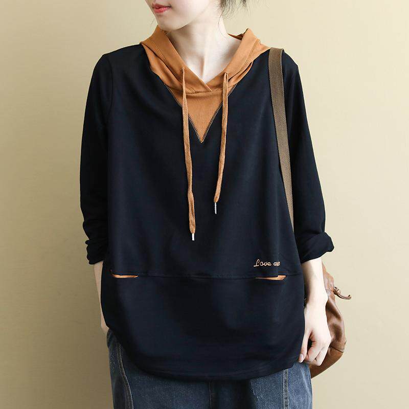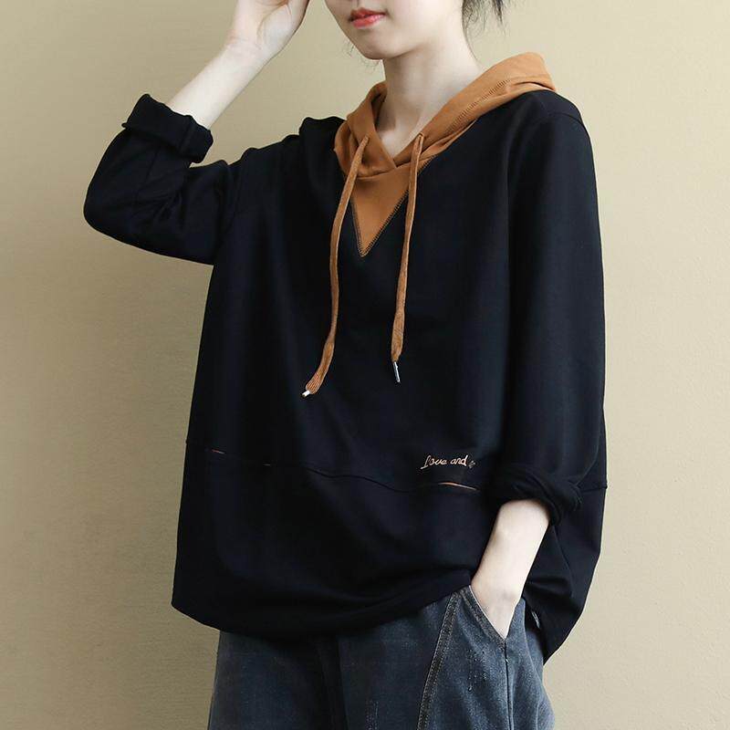 Лонгслив, осенняя толстовка с капюшоном для отдыха, большой размер, на шнурках