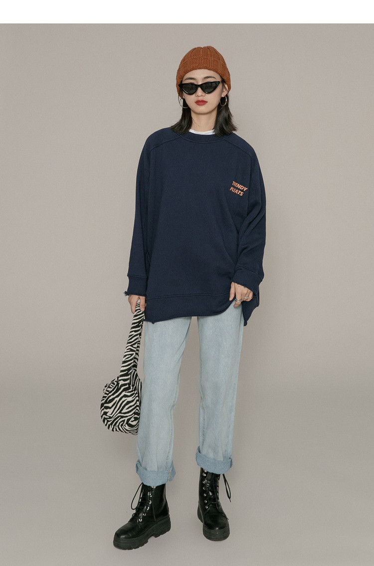 Осенняя толстовка, лонгслив с круглым воротником, 2020, оверсайз, свободный крой