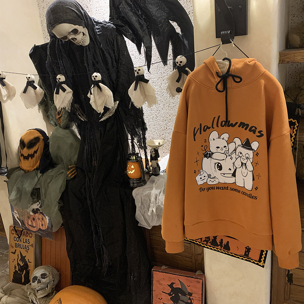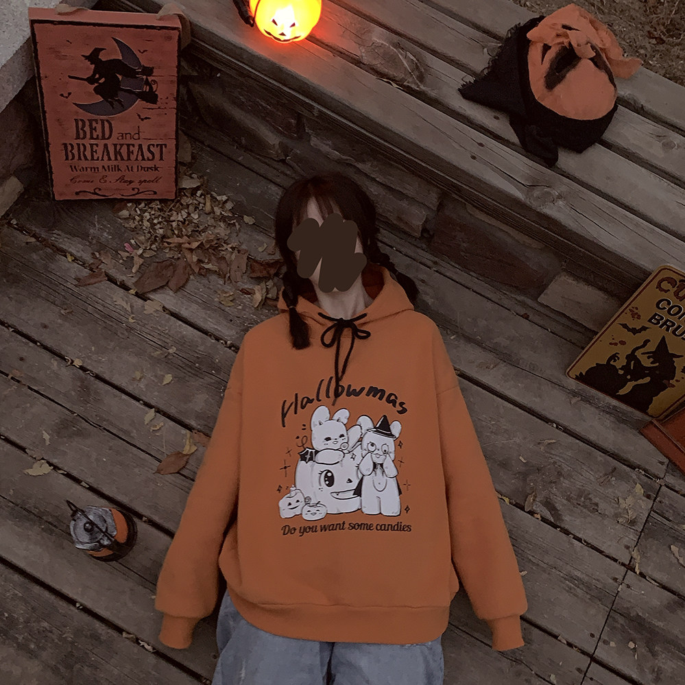 Оригинальный милый кролик, оранжевая толстовка с капюшоном, утепленная толстовка, xэллоуин