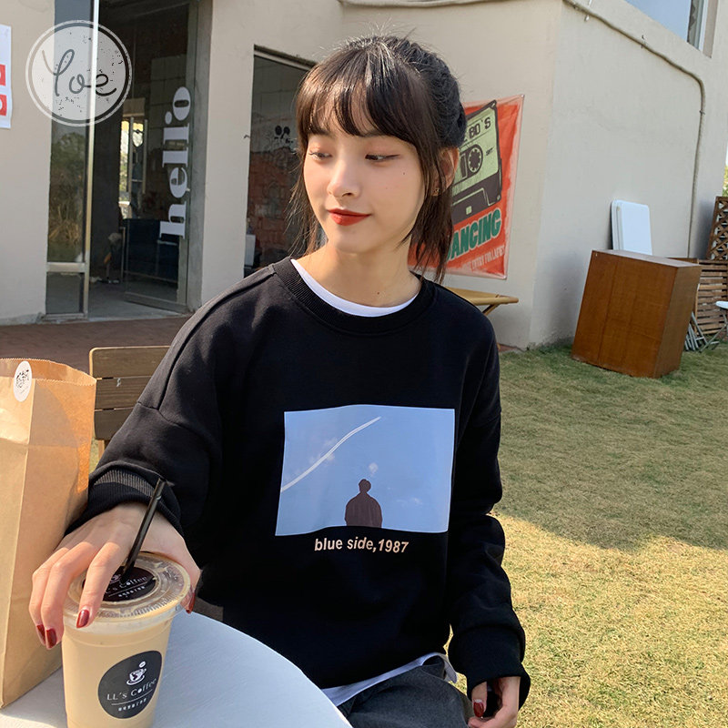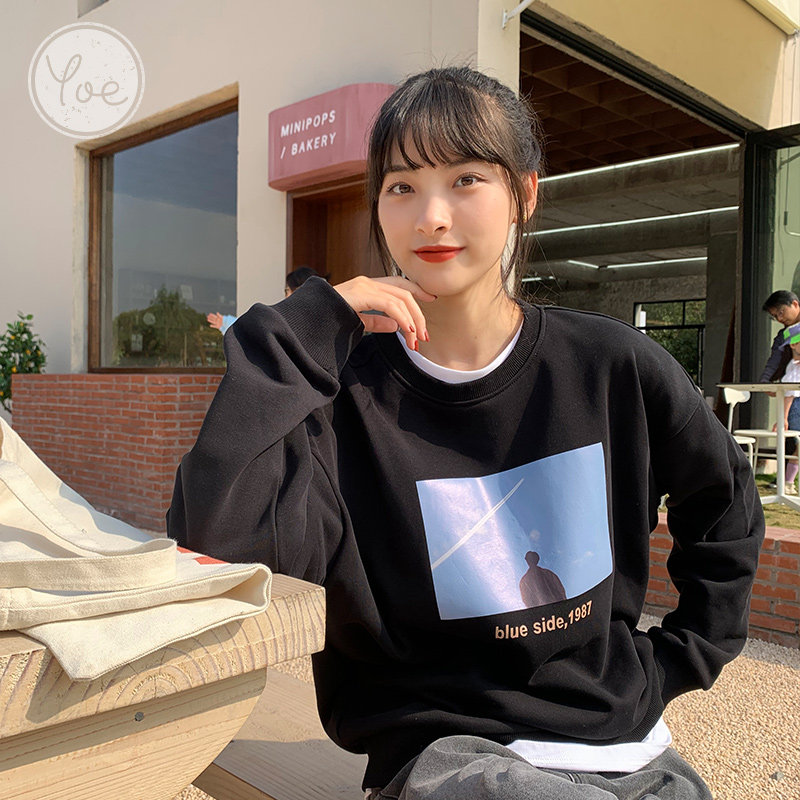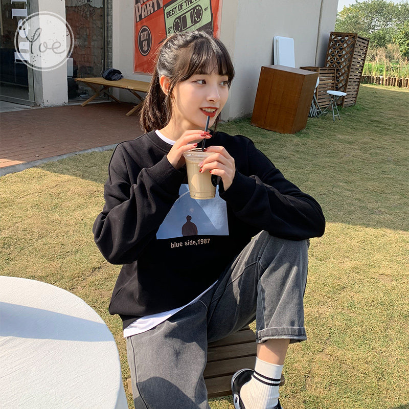 Tide, черная дизайнерская толстовка с круглым воротником, коллекция 2021, в корейском стиле, тренд сезона, в западном стиле