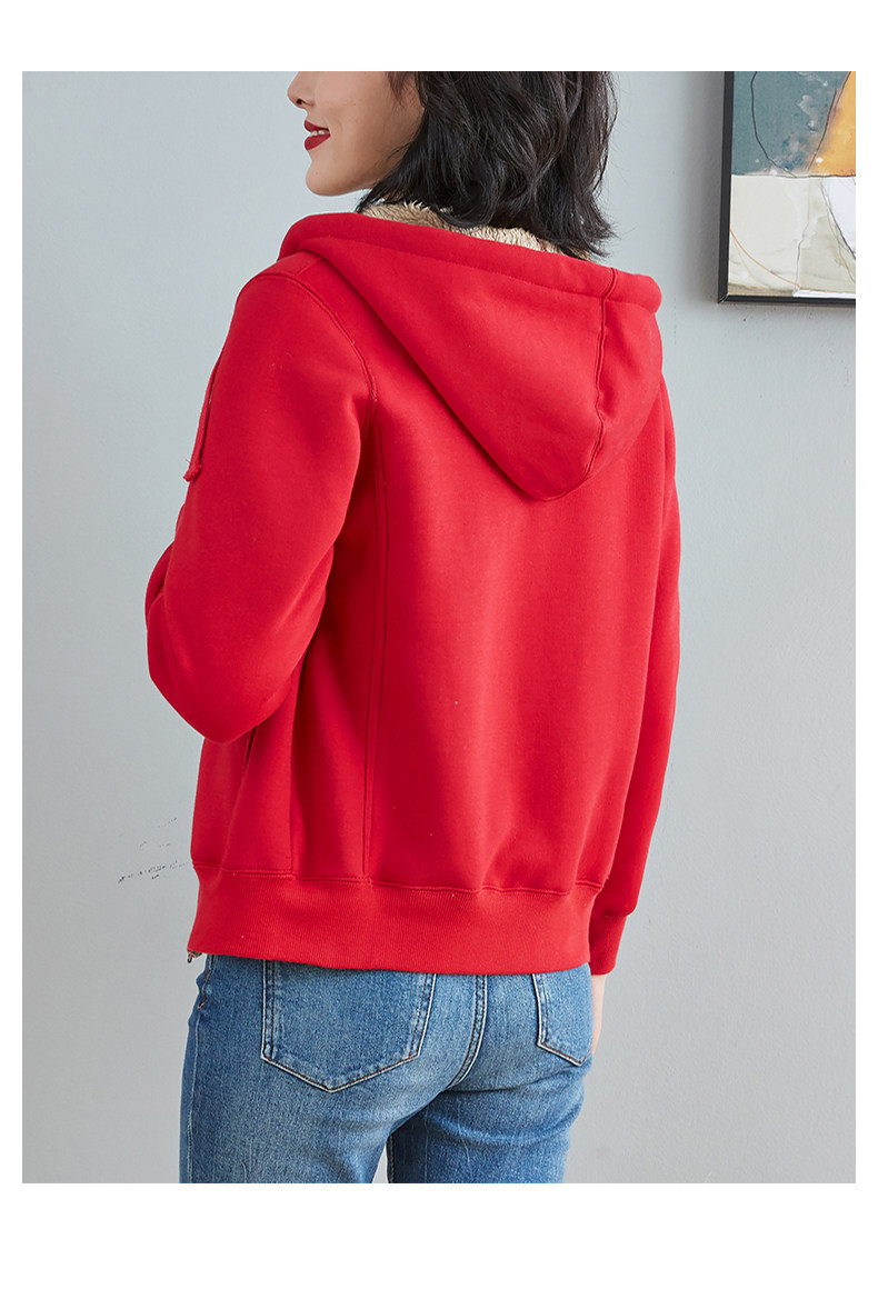 Красная демисезонная утепленная толстовка, бархатная спортивная утепленная толстовка с капюшоном с молнией, хлопковый кардиган, куртка