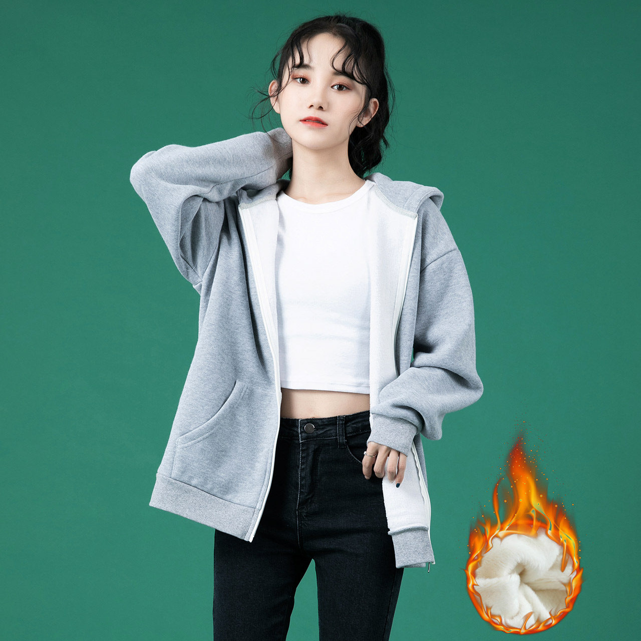 Tide, утепленная утепленная толстовка, пуховик, толстовка с капюшоном, кардиган для отдыха с молнией, коллекция 2022, увеличенная толщина, в корейском стиле