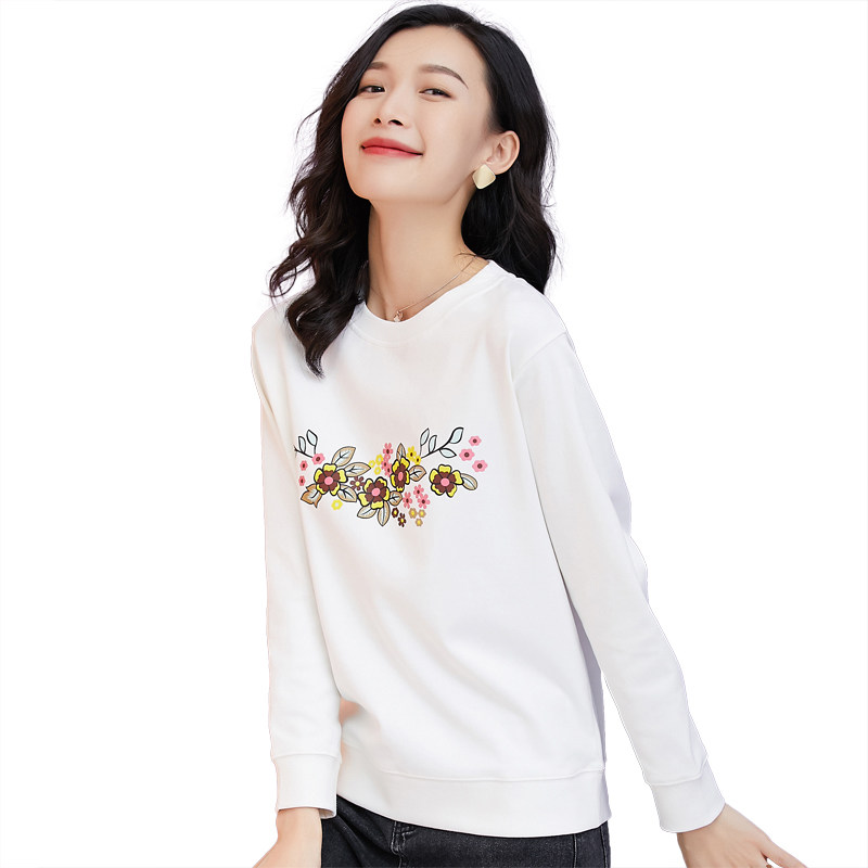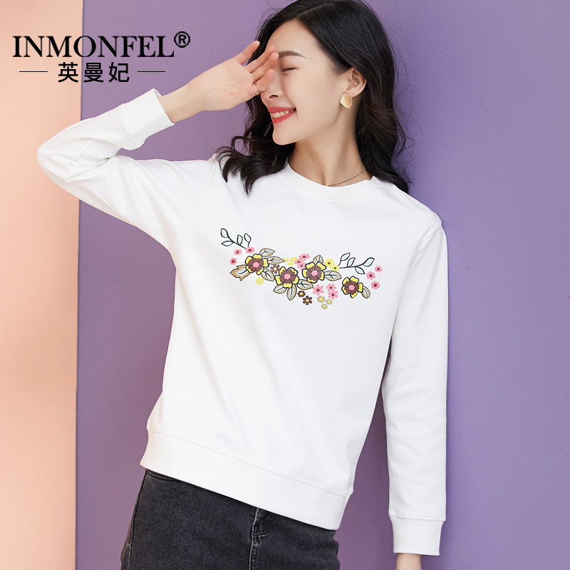 Модная осенняя тонкая толстовка с круглым воротником, белый лонгслив, нарукавники, 2020