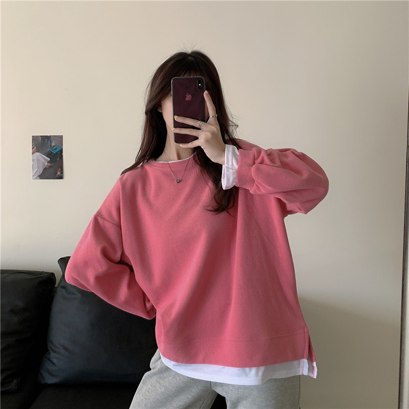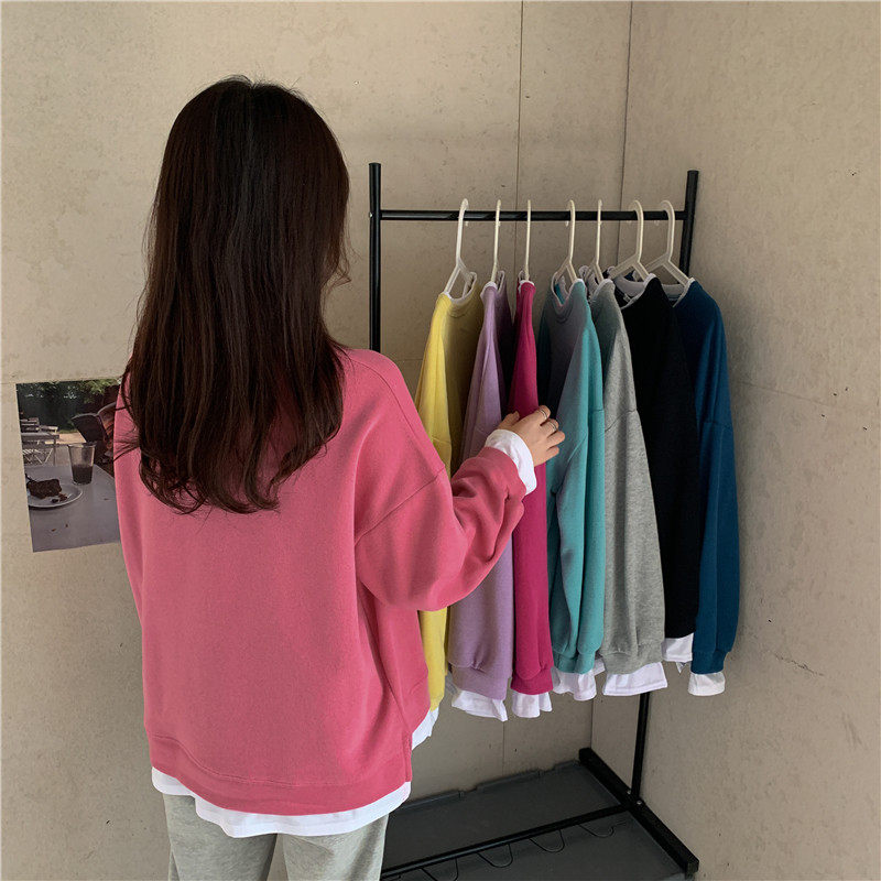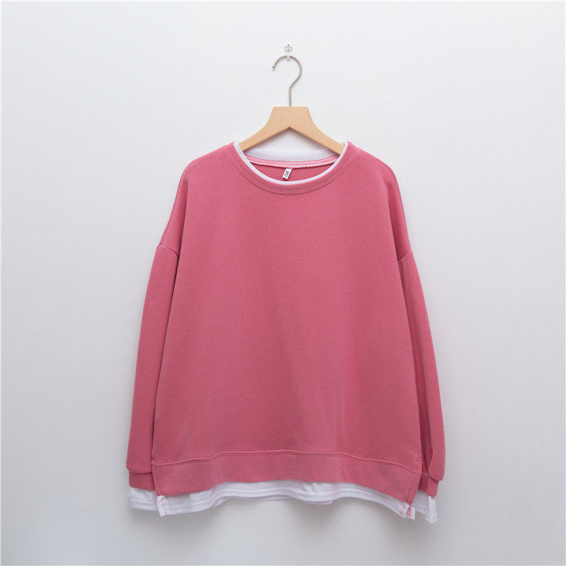 Демисезонная толстовка с круглым воротником, комплект, лонгслив, в корейском стиле, увеличенная толщина, большой размер, свободный крой