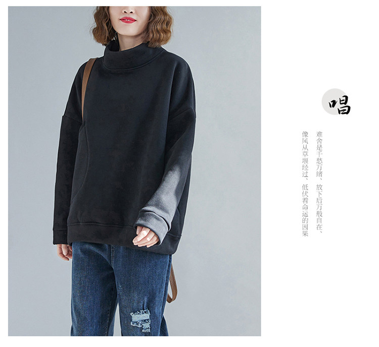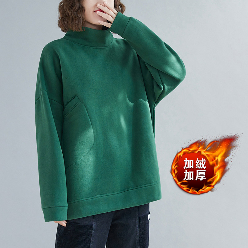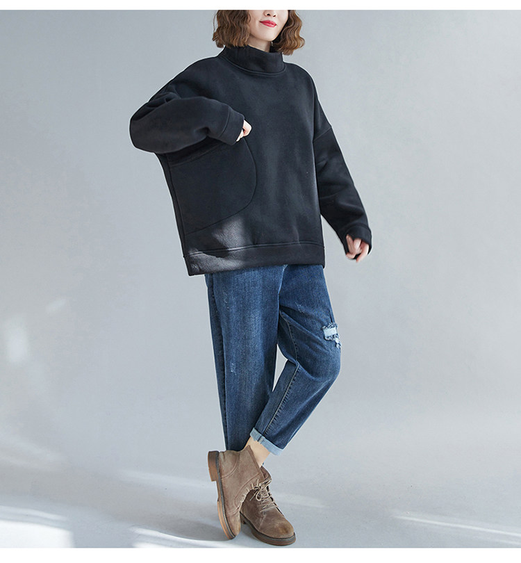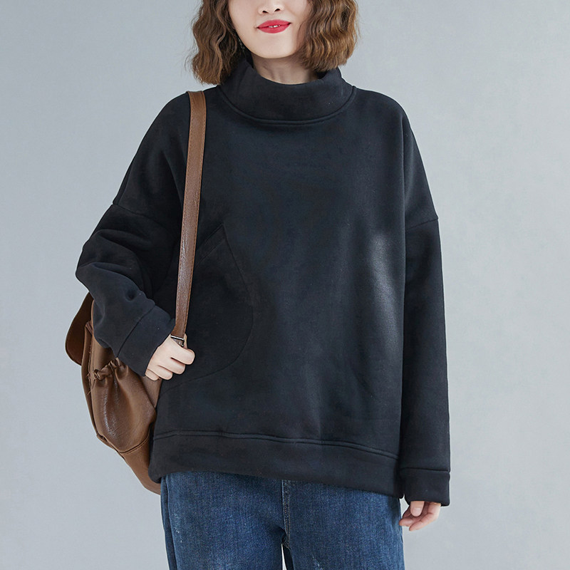 Утепленная утепленная толстовка, демисезонный лонгслив, универсальный пластырь, высокий воротник, 2020, оверсайз