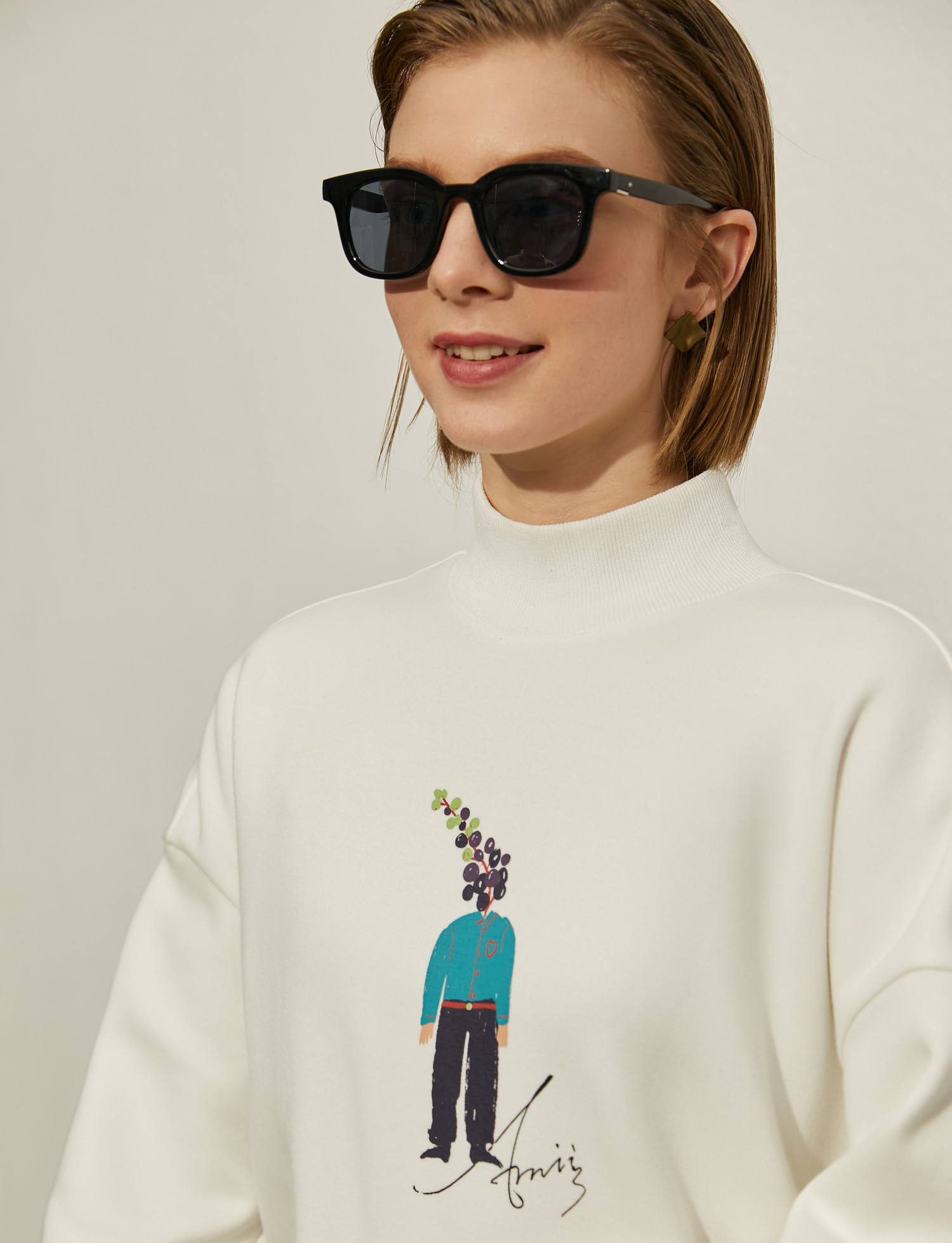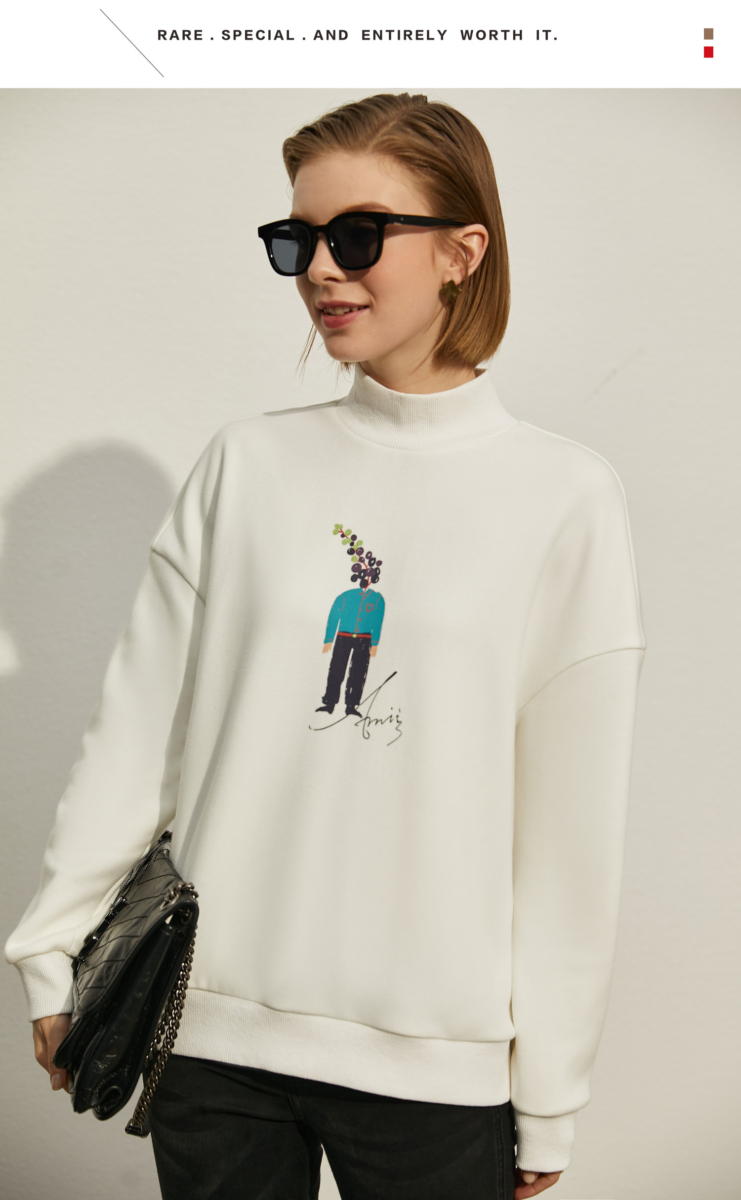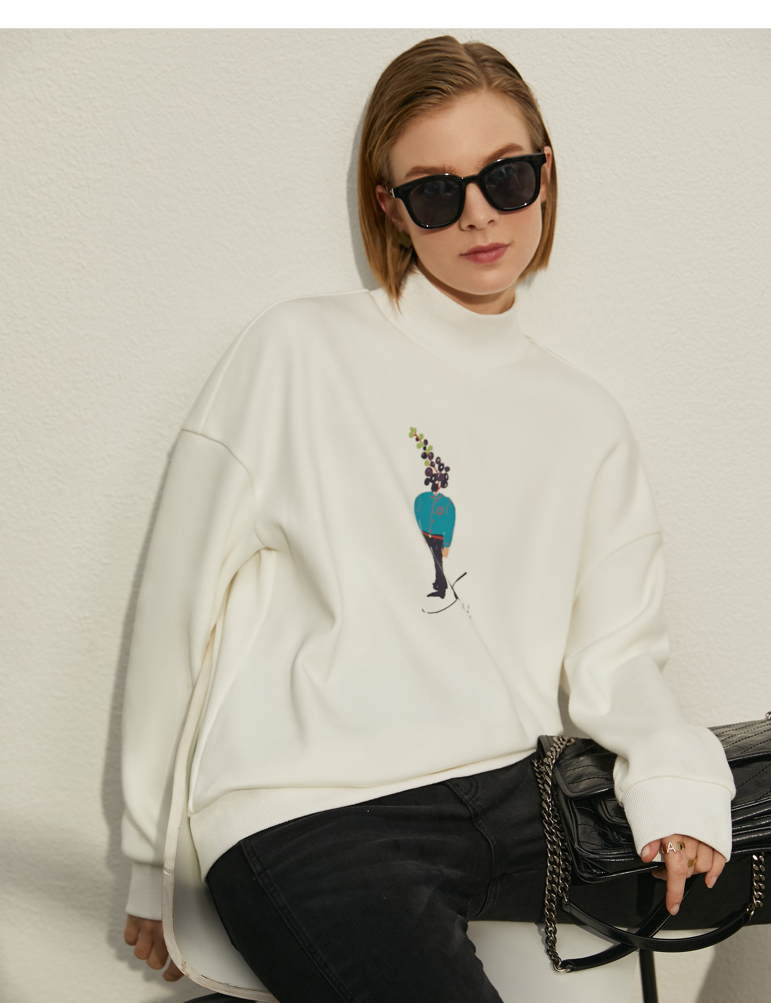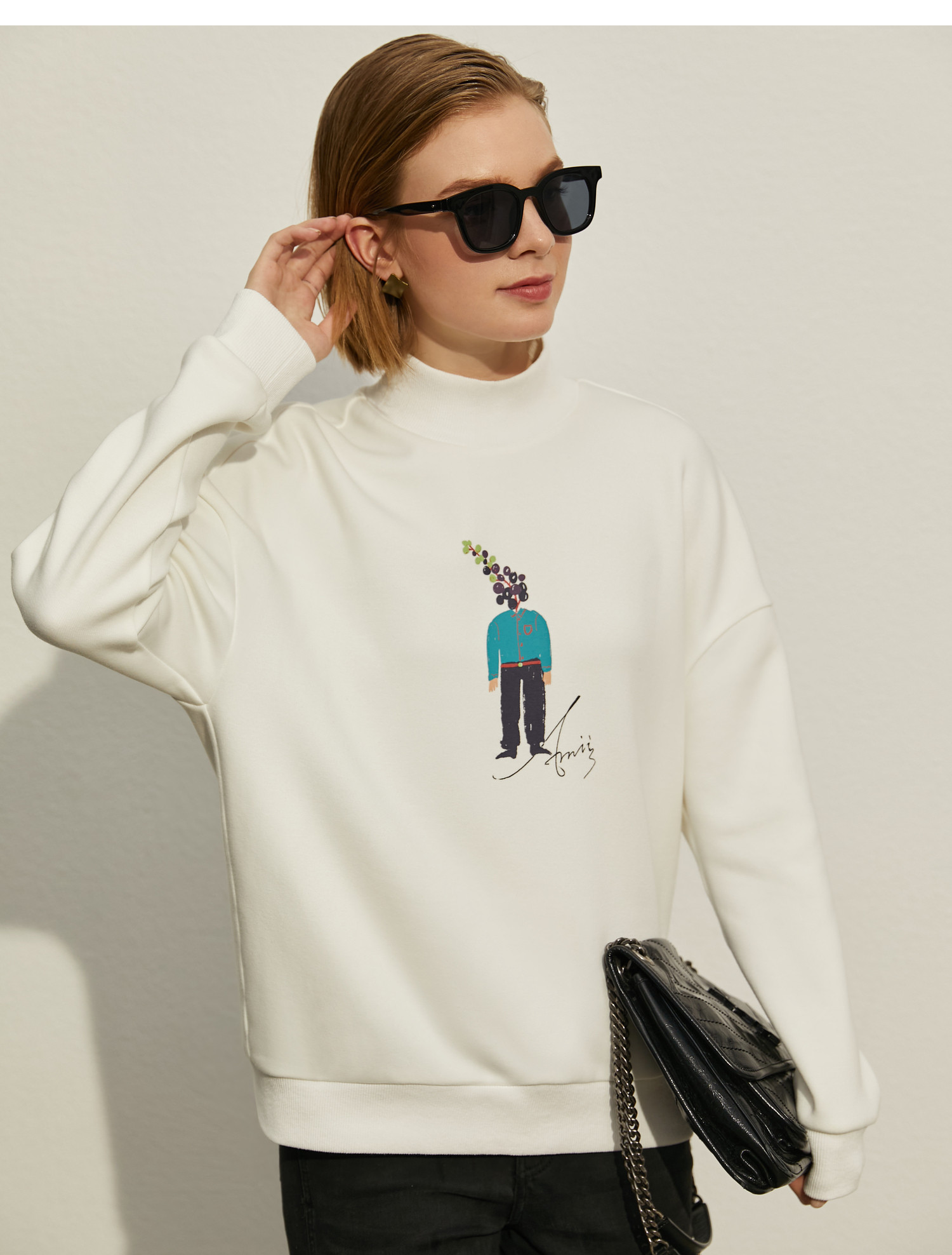 Amii Зимняя белая толстовка, большой размер, 2020, оверсайз, высокий воротник