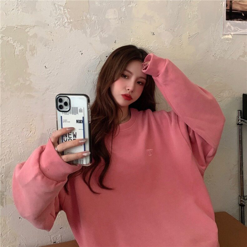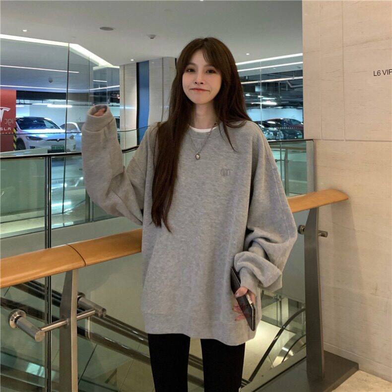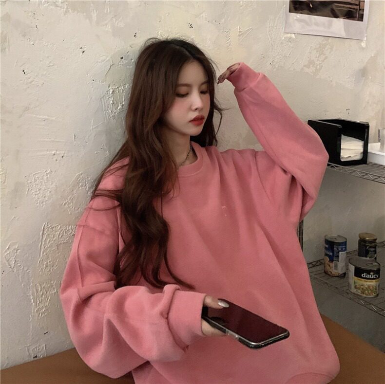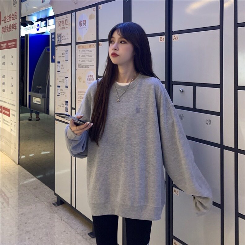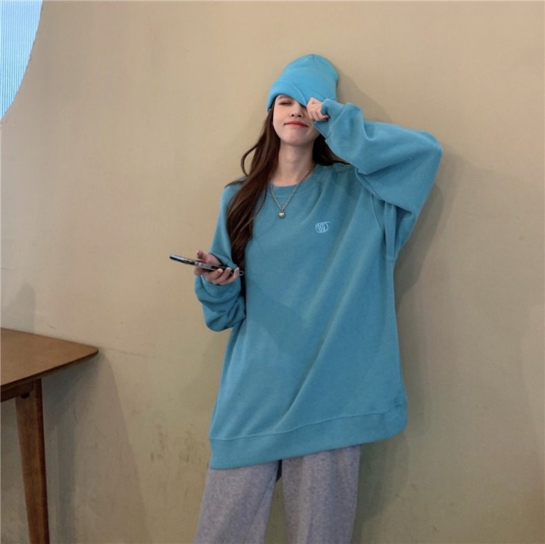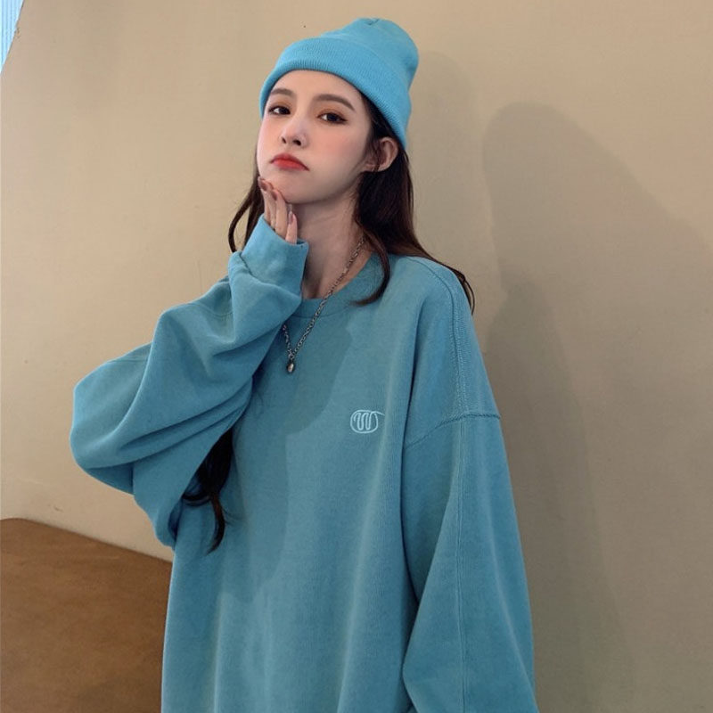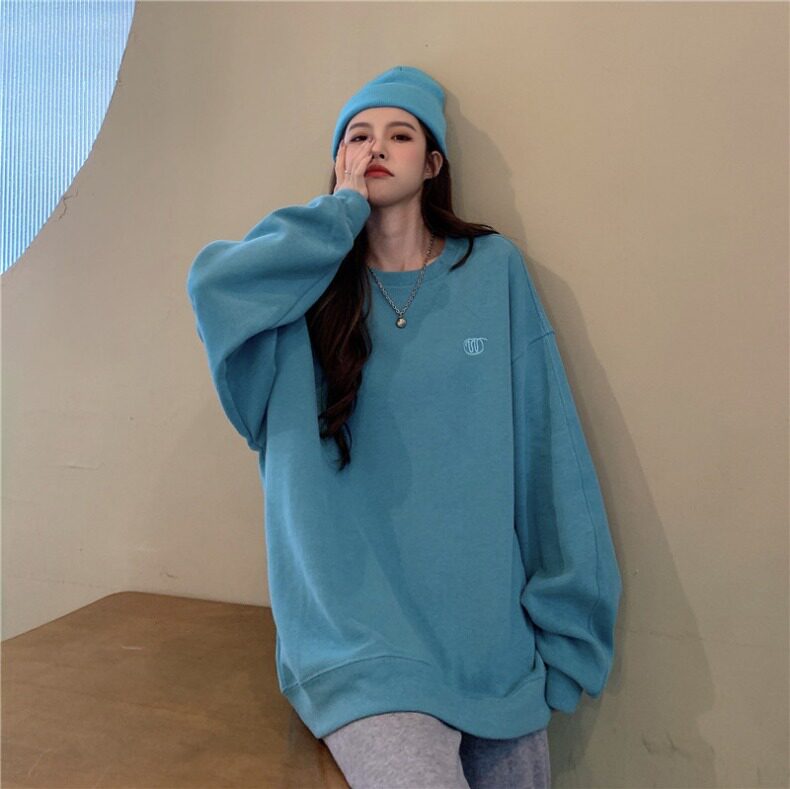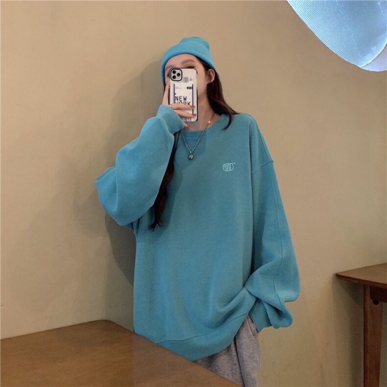 Синяя весенняя толстовка с круглым воротником для школьников и студентов, оверсайз, в корейском стиле
