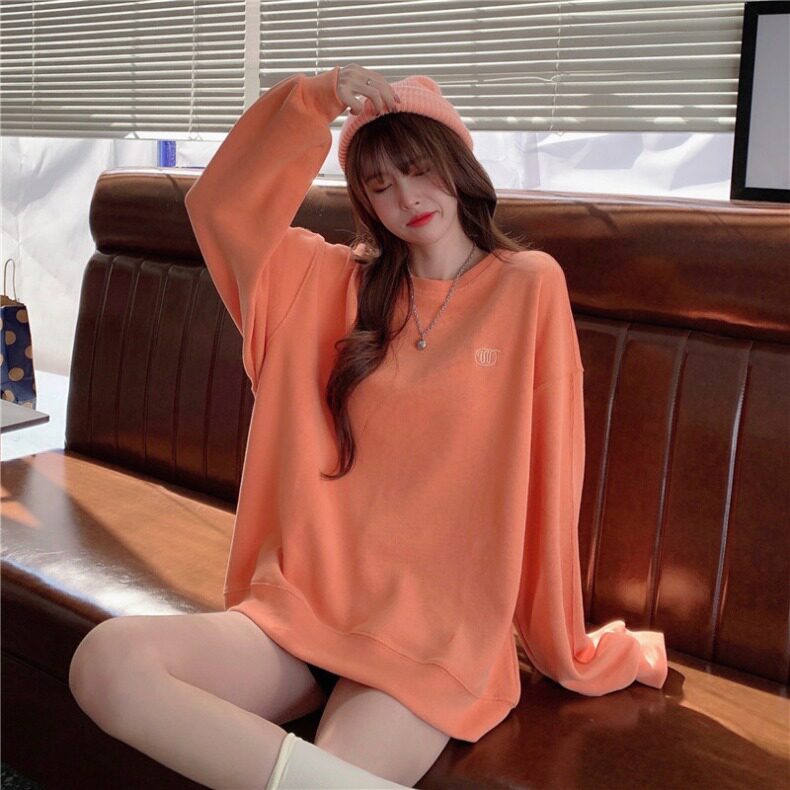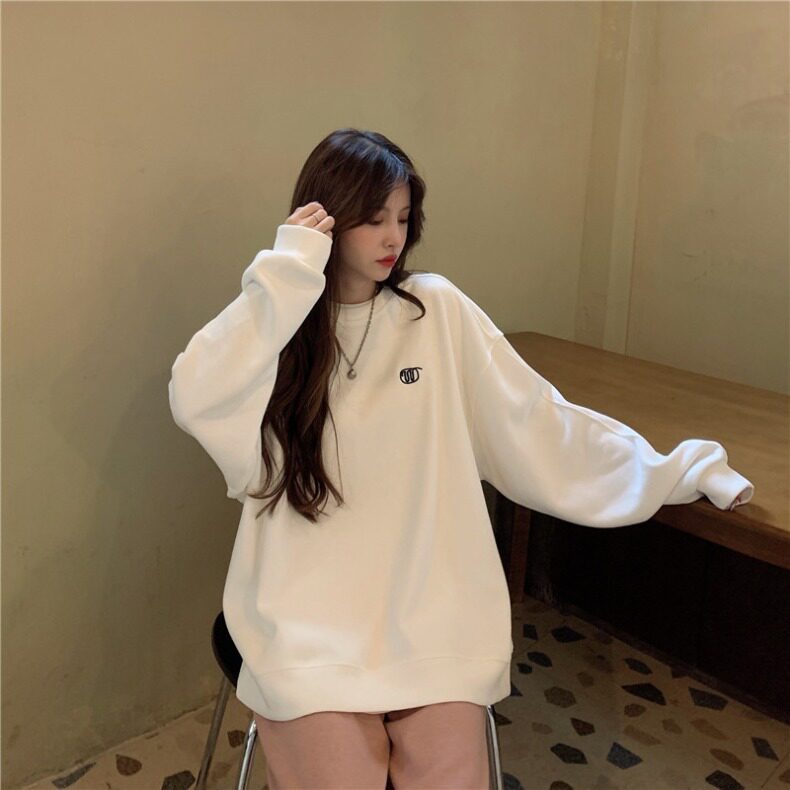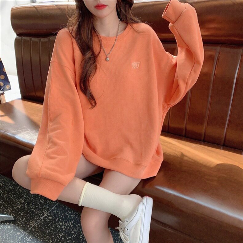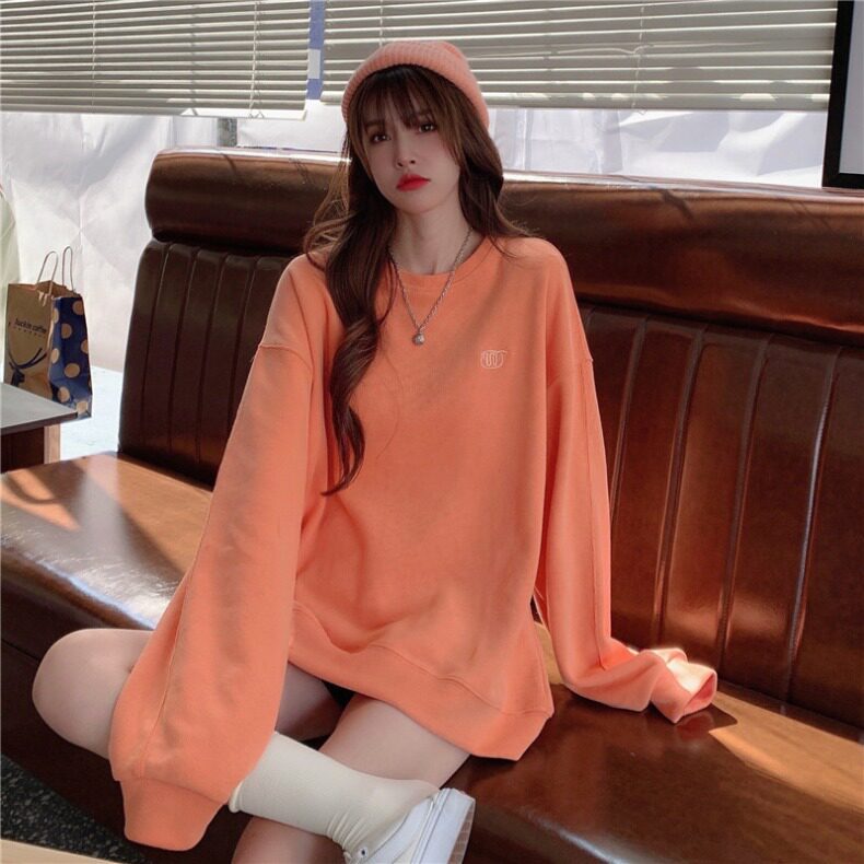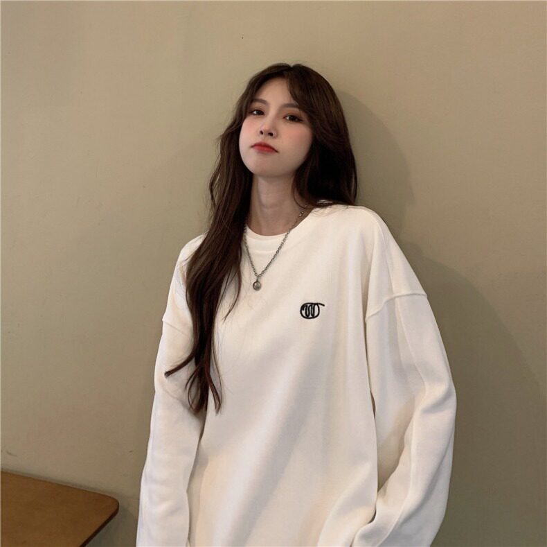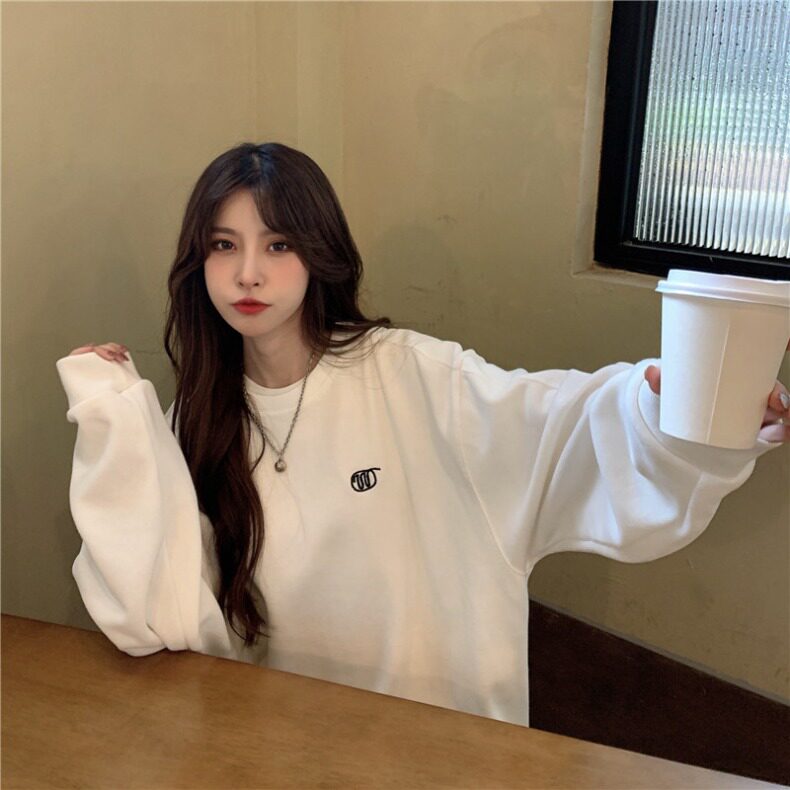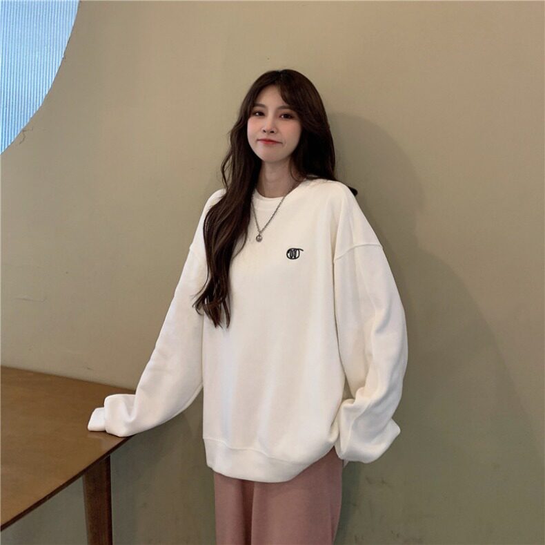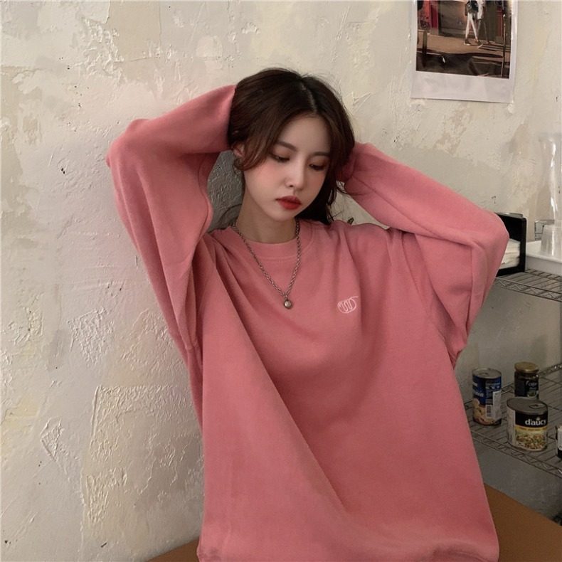 Синяя весенняя толстовка с круглым воротником для школьников и студентов, оверсайз, в корейском стиле