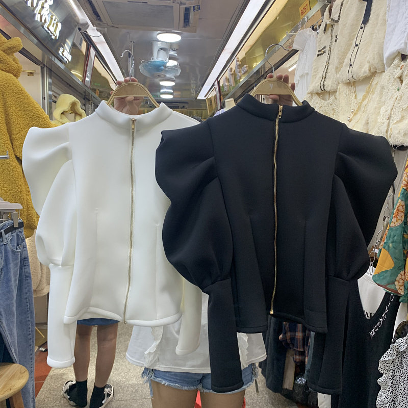 Демисезонная космическая короткая дизайнерская толстовка, куртка, европейский стиль, свободный крой, рукава фонарики, тренд сезона