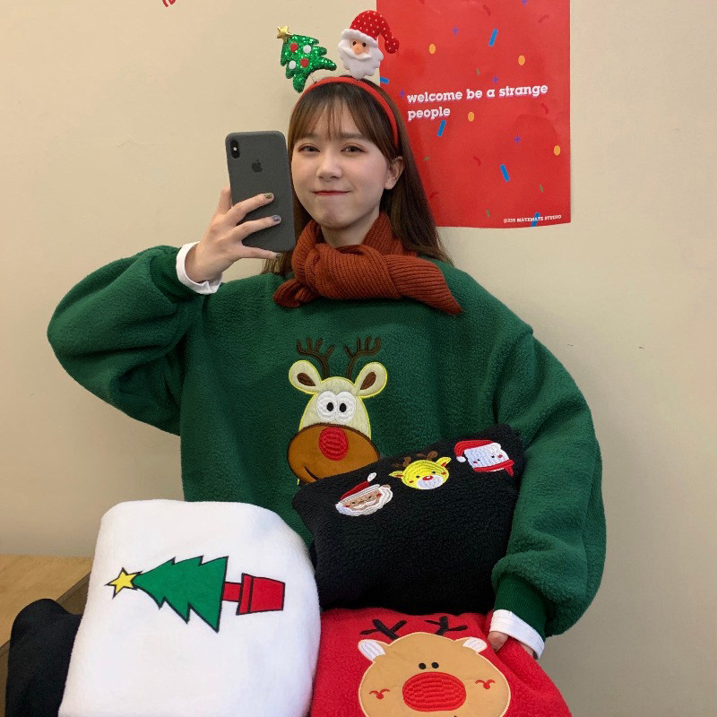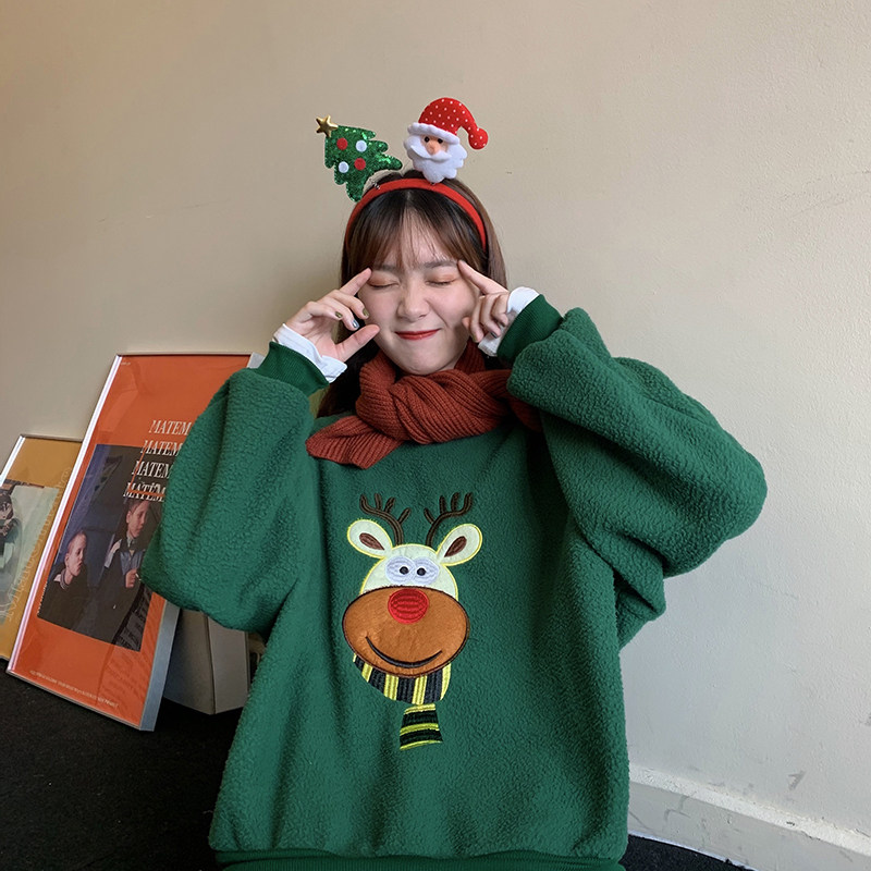 Рождественская бархатная зеленая демисезонная толстовка, комплект, 2020, в корейском стиле