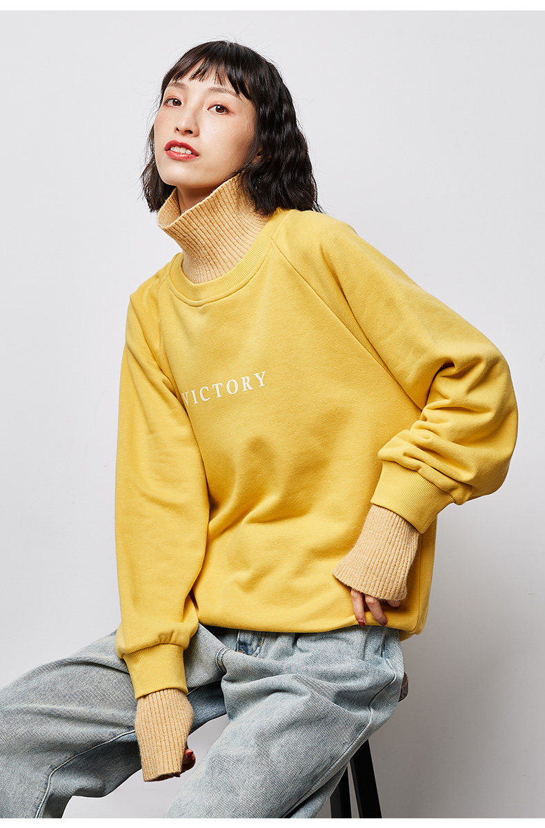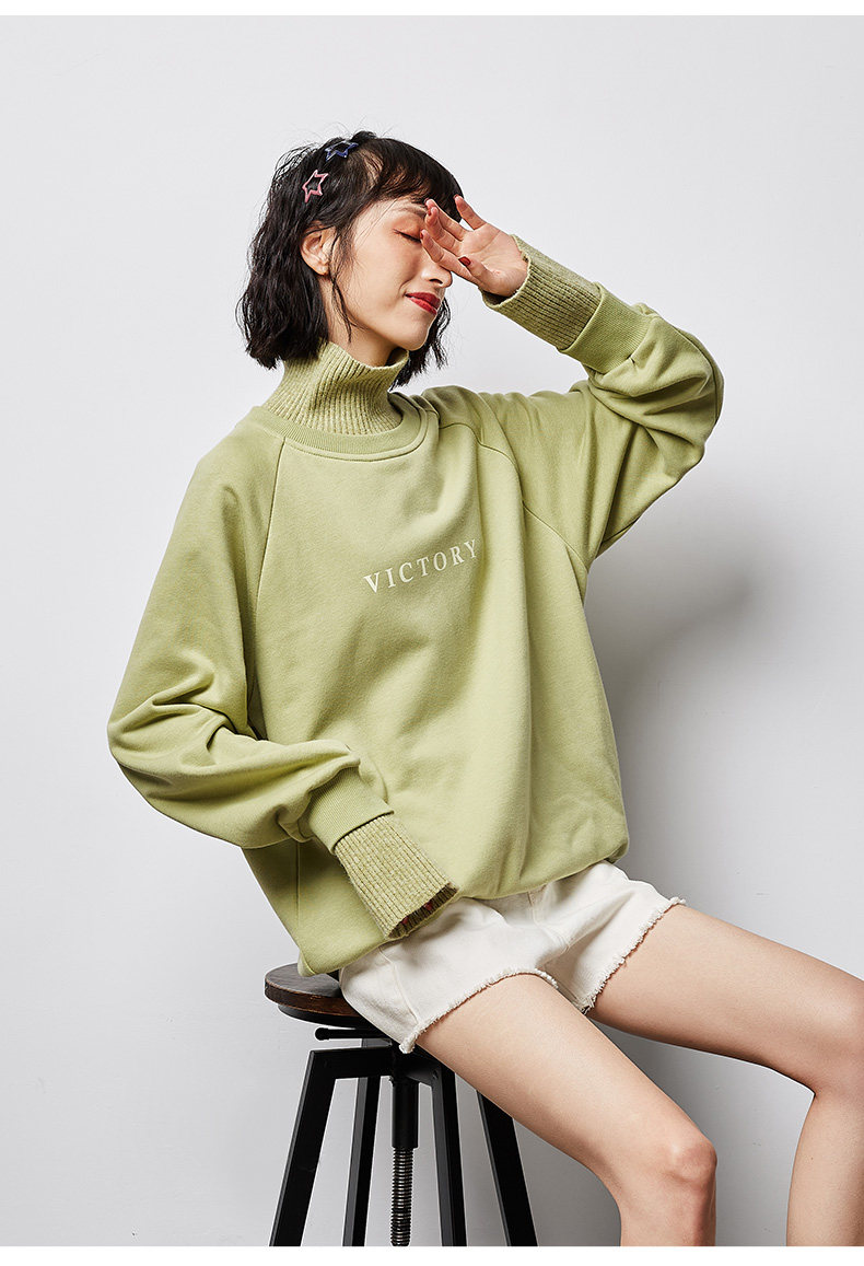 Демисезонная шерстяная толстовка, брендовый лонгслив, 2020, высокий воротник, в корейском стиле