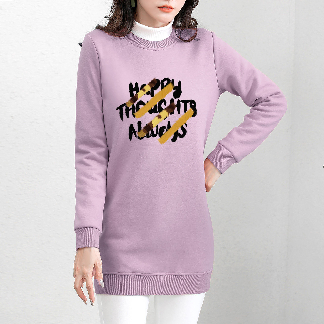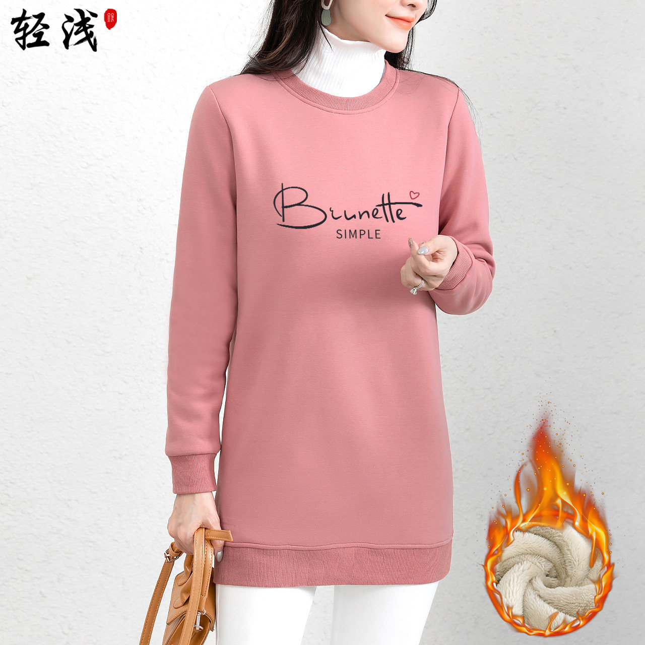 Утепленная длинная толстовка, базовый бархатный удерживающий тепло пуховик, средней длины, городской стиль, с акцентом на бедрах
