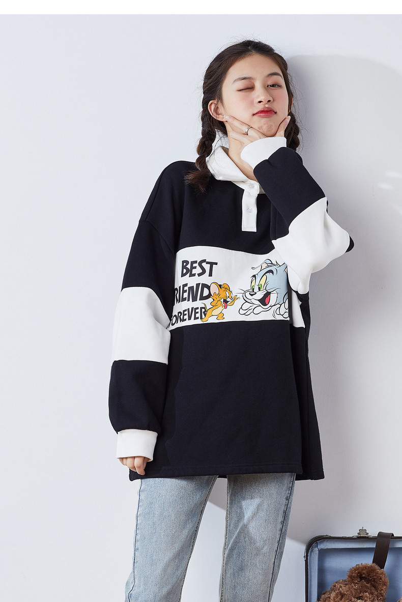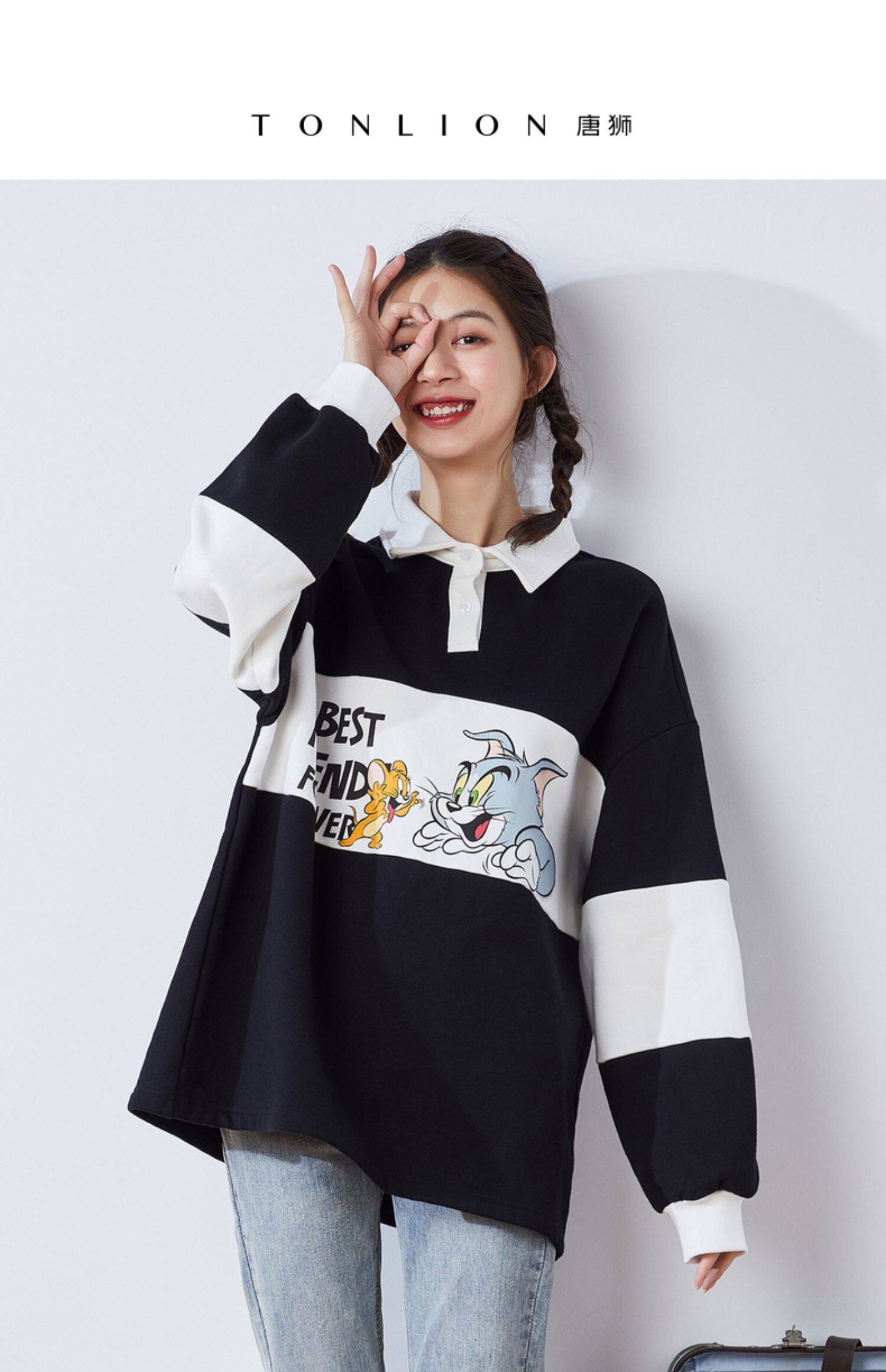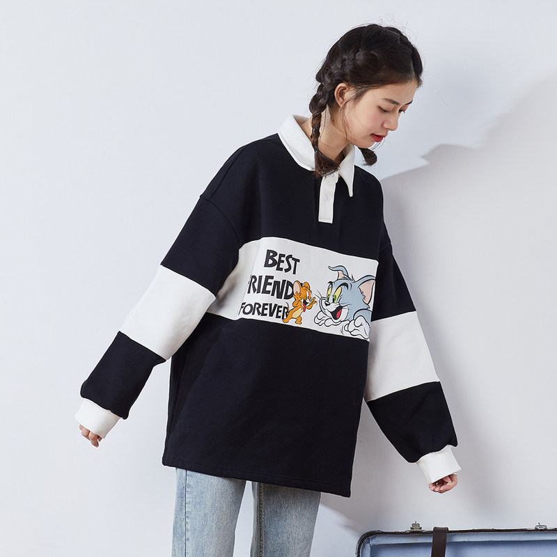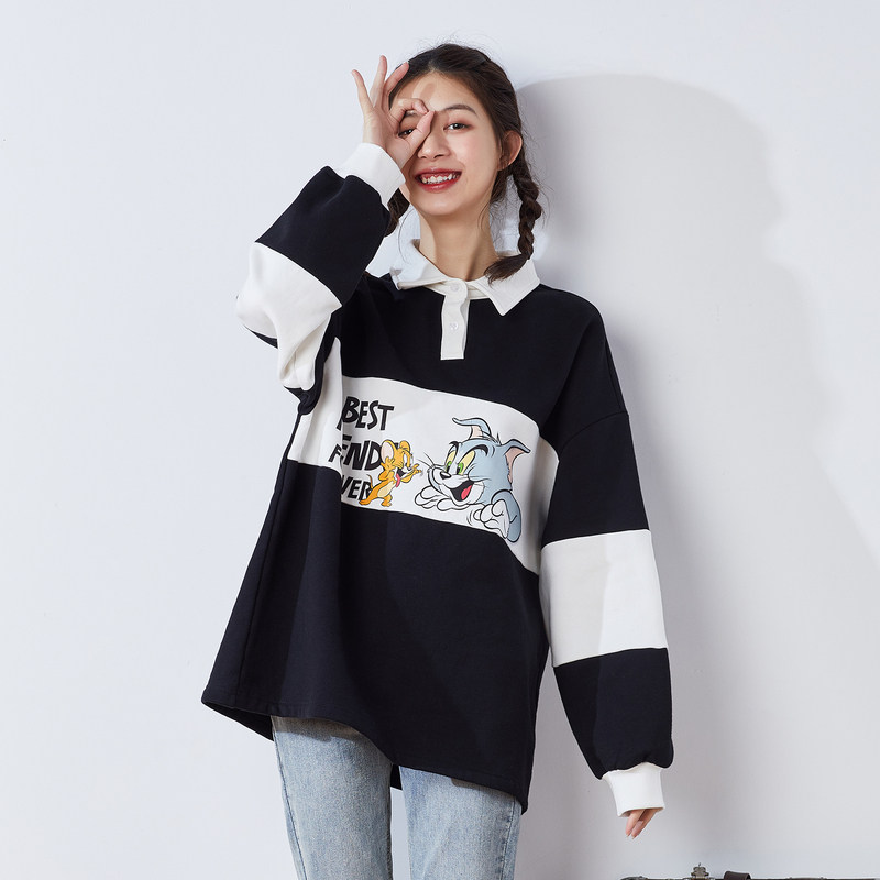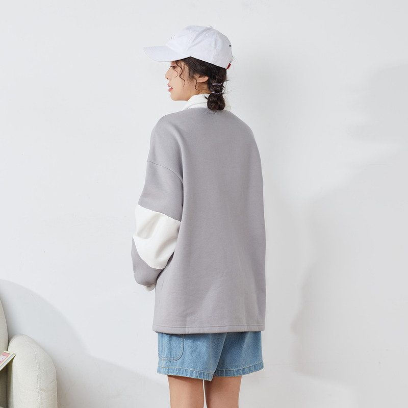 Осенняя толстовка, коллекция 2021, воротник поло, в корейском стиле, оверсайз