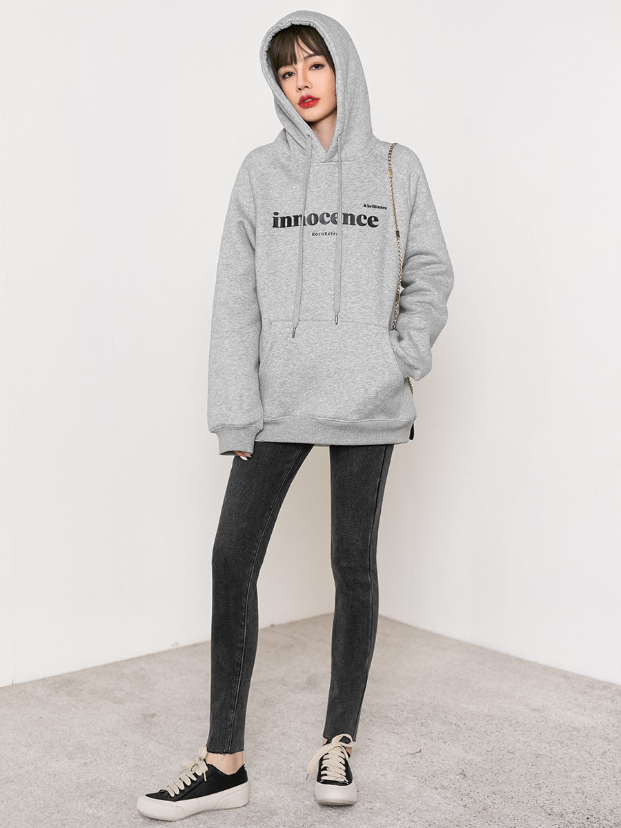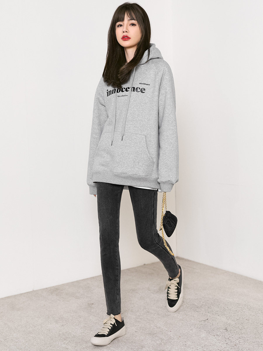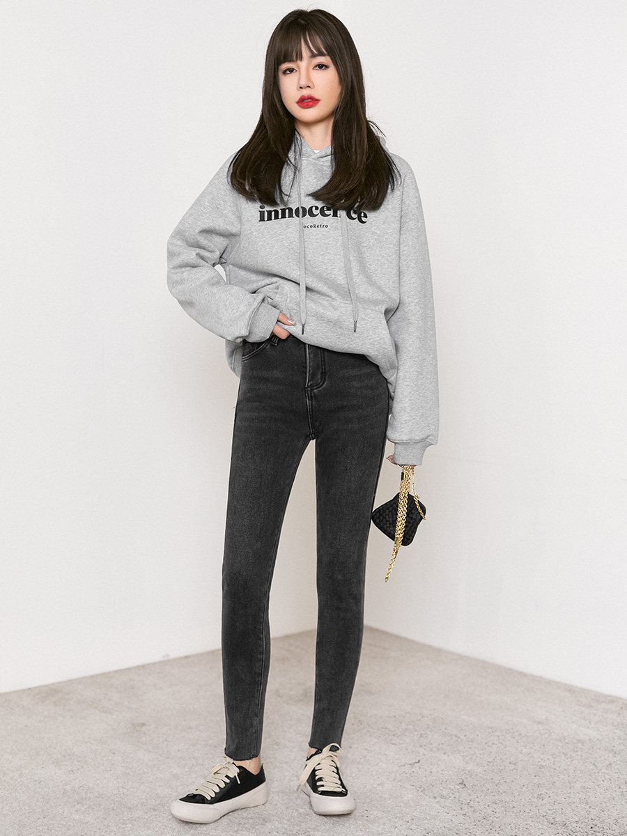 Tide, элитная белая толстовка с капюшоном, утепленные дизайнерские джинсы с начесом, тренд сезона, коллекция 2023
