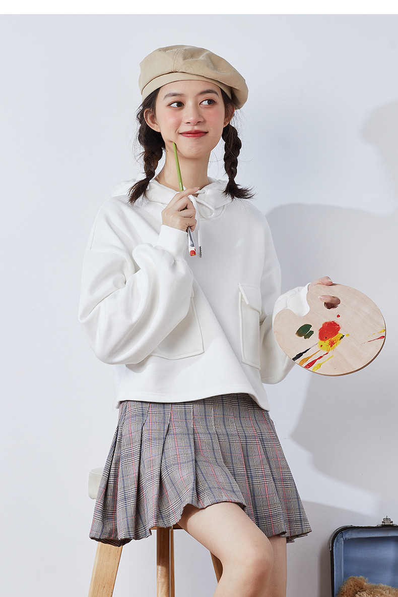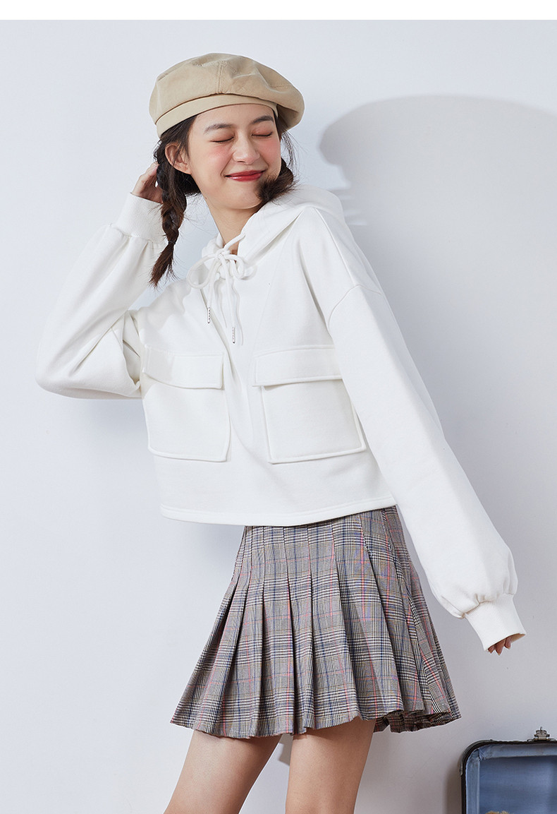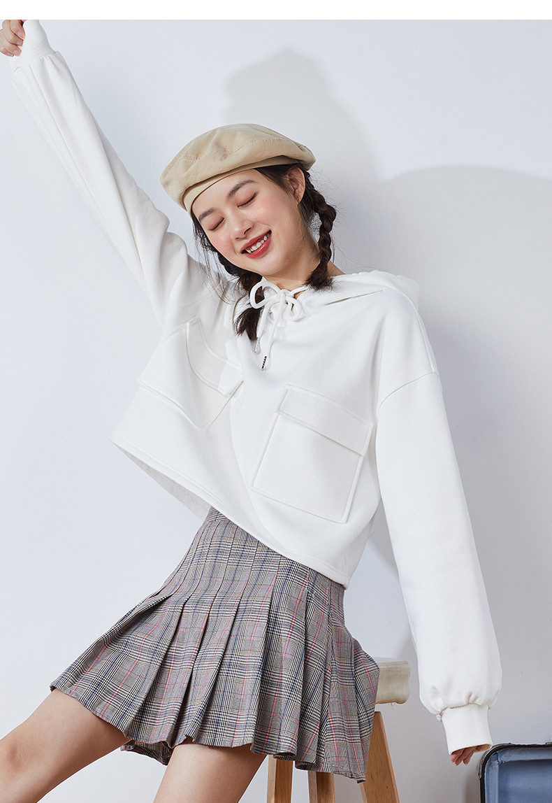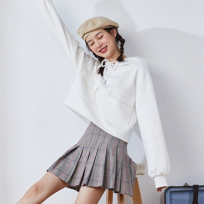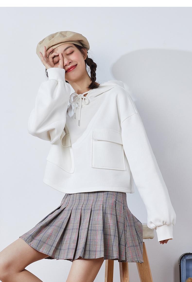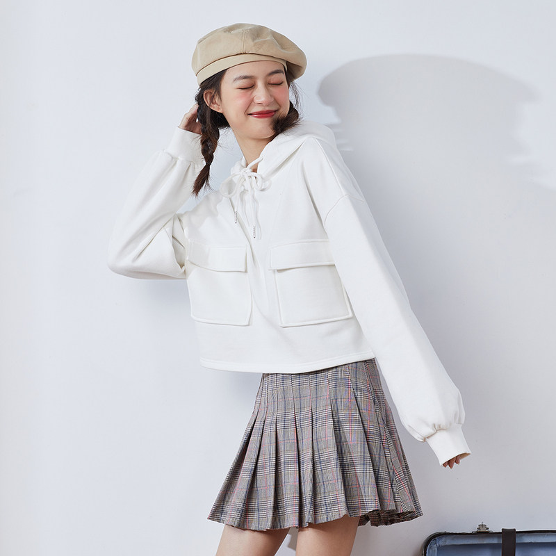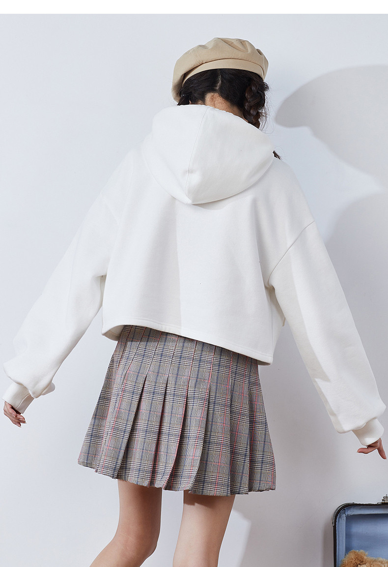 Короткая белая толстовка с капюшоном для школьников и студентов, коллекция 2021, оверсайз, в корейском стиле