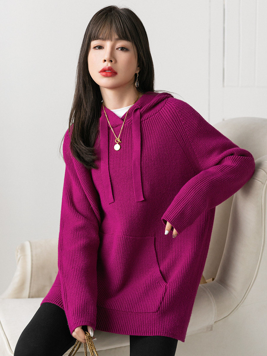 Сиреневая трикотажная осенняя японская дизайнерская толстовка с капюшоном, тренд сезона