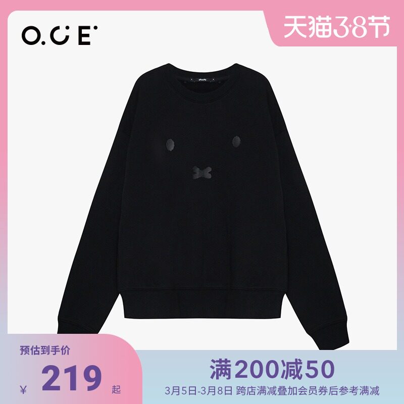 OCE Летняя хлопковая черная толстовка с круглым воротником, коллекция 2021, оверсайз