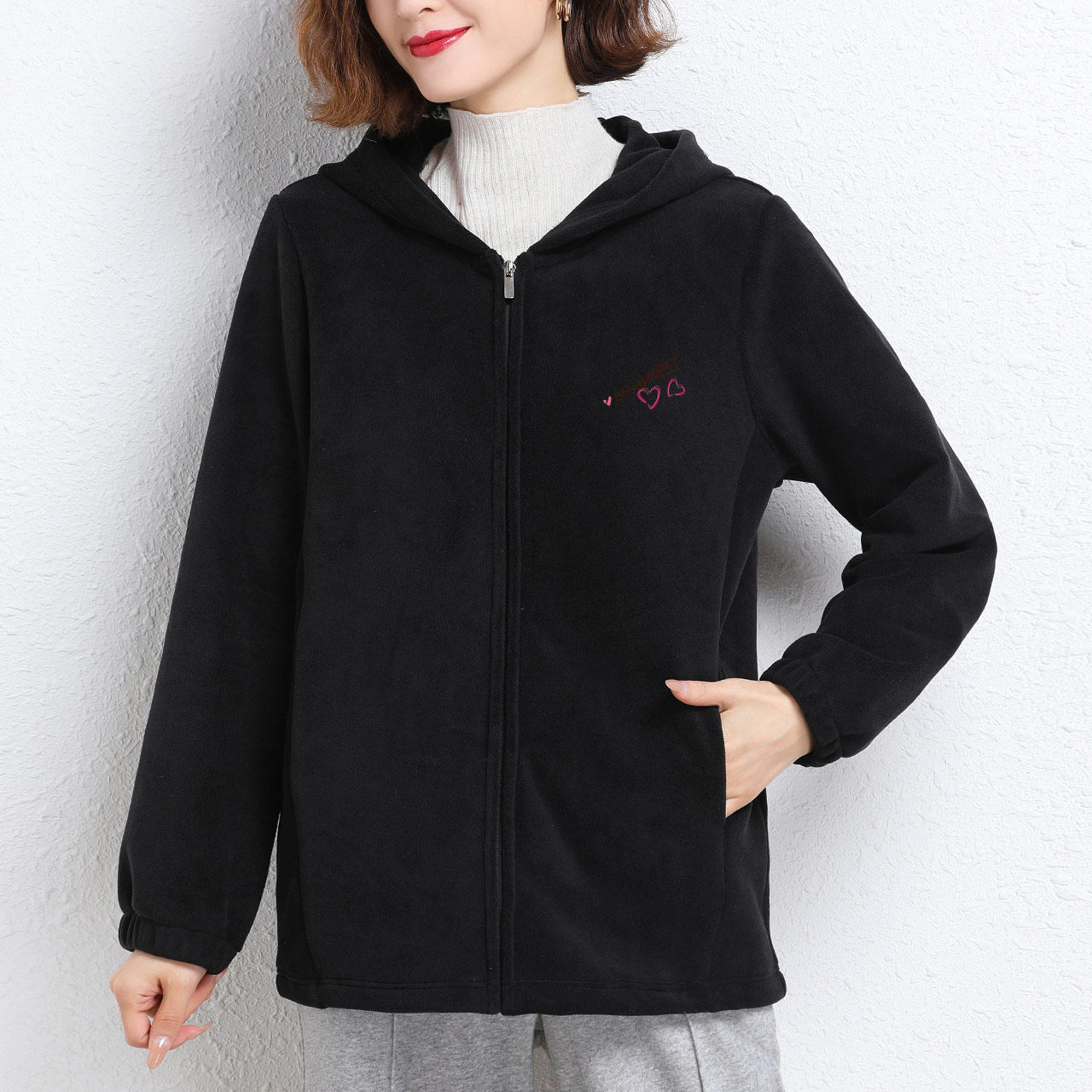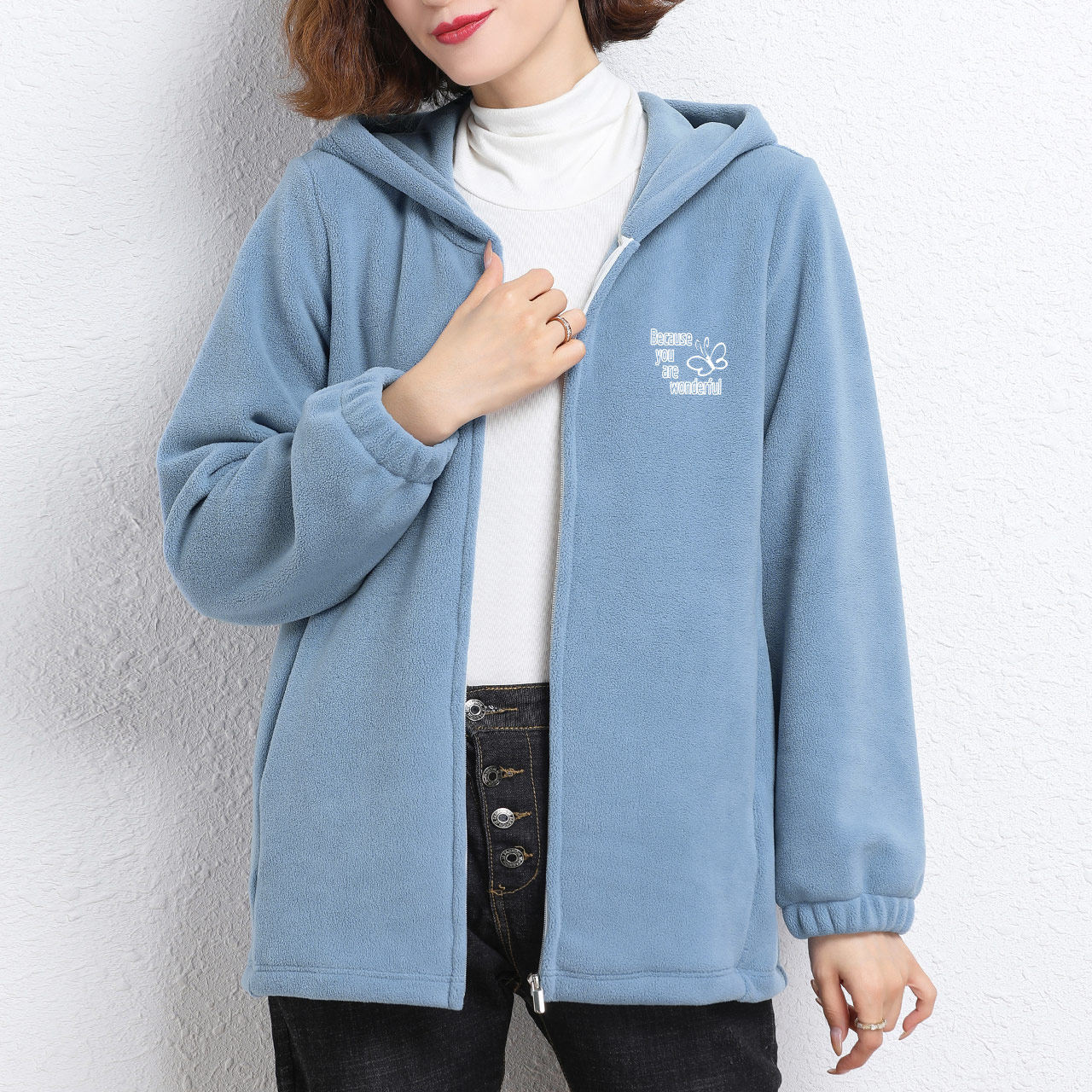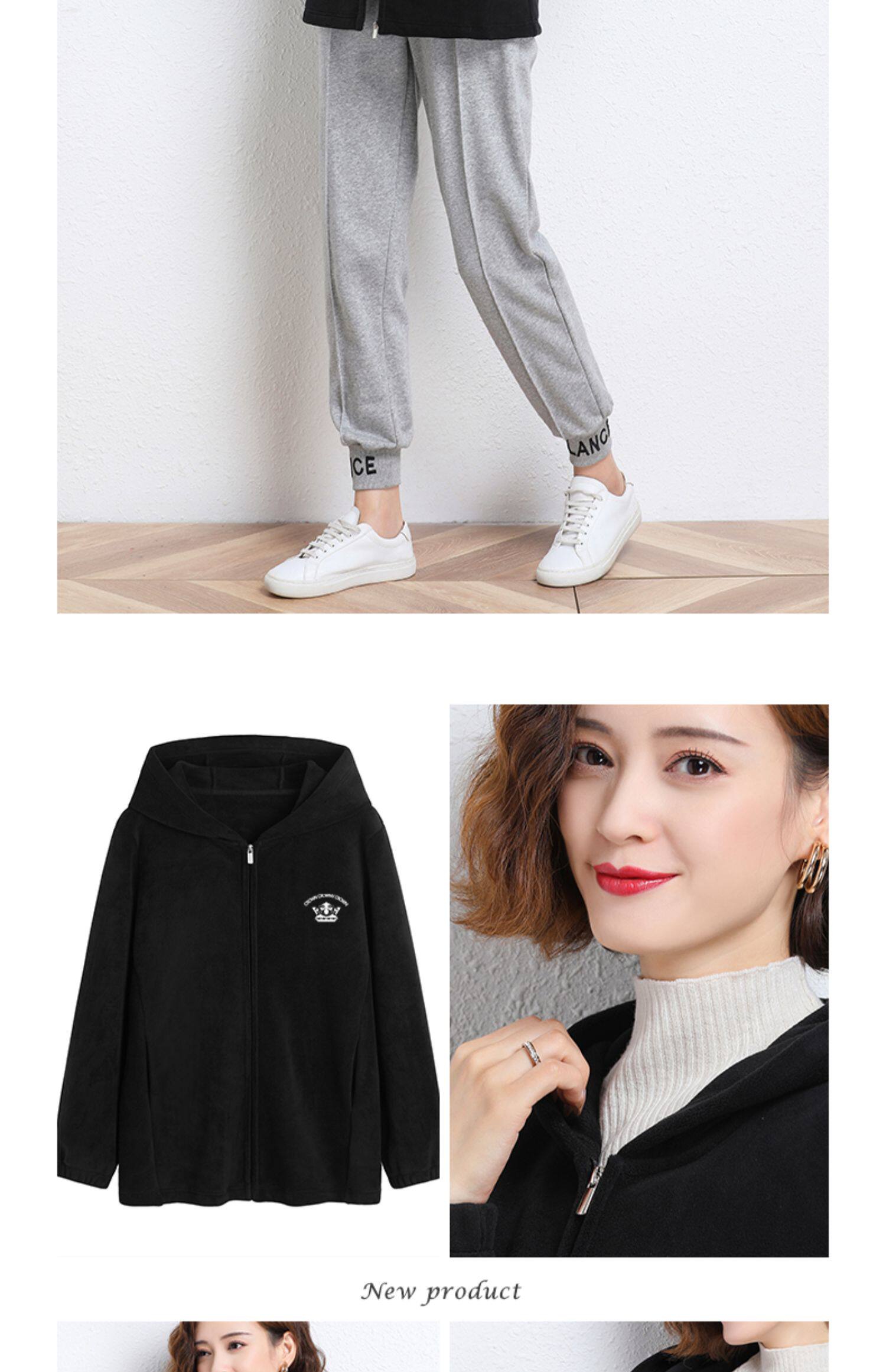 Демисезонная бархатная утепленная толстовка с капюшоном с молнией, кардиган, джинсы с начесом, большой размер