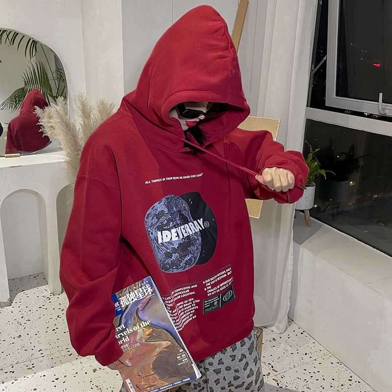 Красный оберег на день рождения с капюшоном, флисовая толстовка, увеличенная толщина, коллекция 2021, в западном стиле