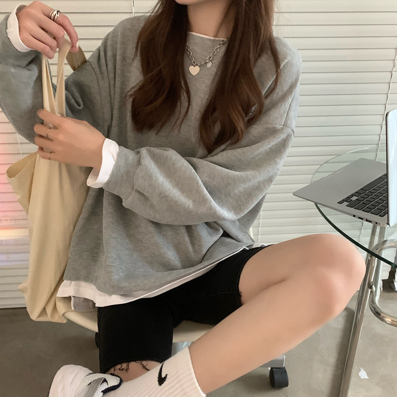 Демисезонный однотонный дизайнерский комплект, лонгслив, нарукавники, толстовка, в корейском стиле, тренд сезона