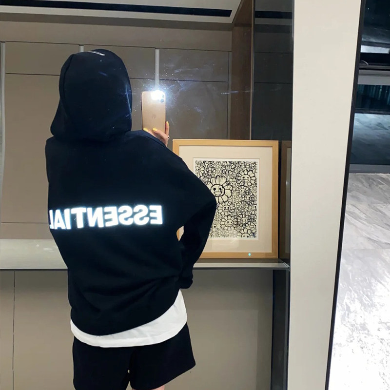 Страх перед Богом Туманная линия Основная алфавит отражающий свободный свитер с капюшоном мужчины и женщины на главной улице