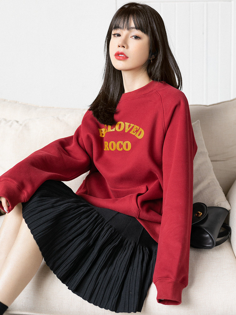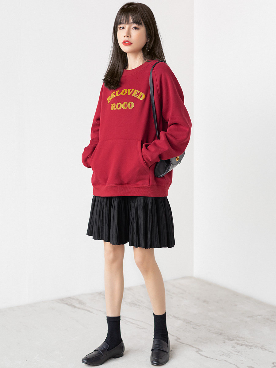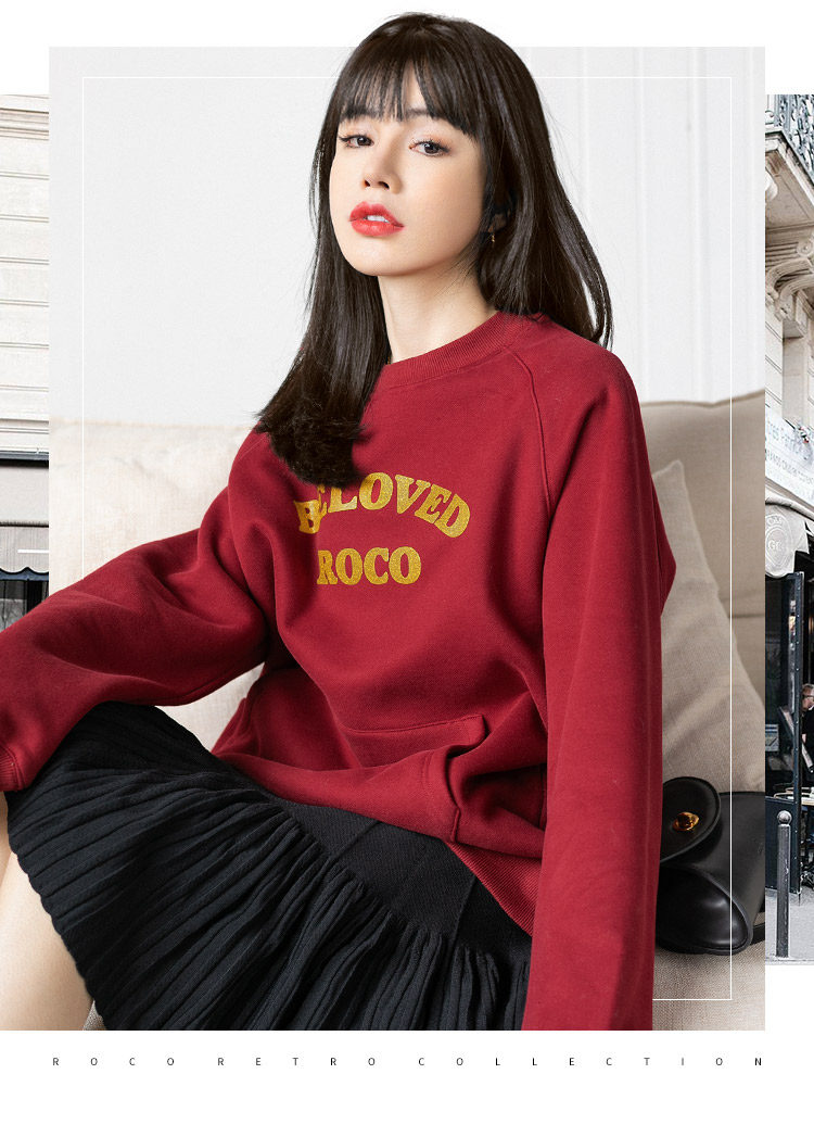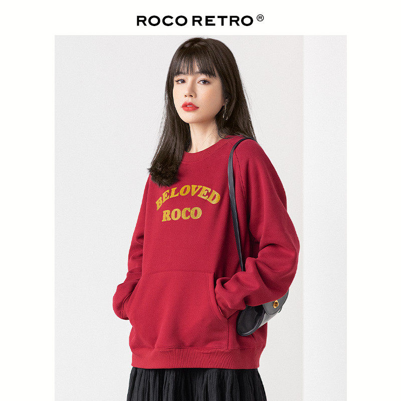 Ретро красная цветная элитная утепленная весенняя осенняя толстовка с круглым воротником, 2022 года