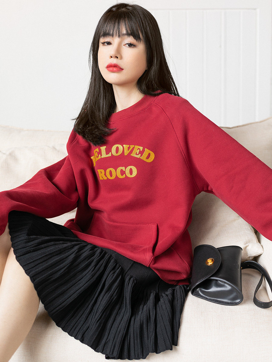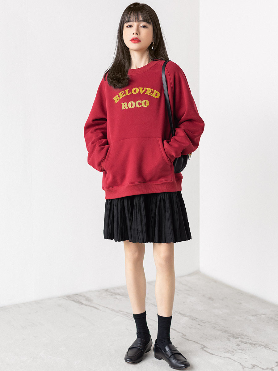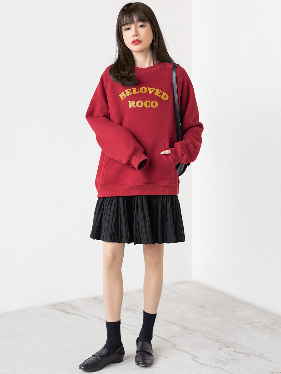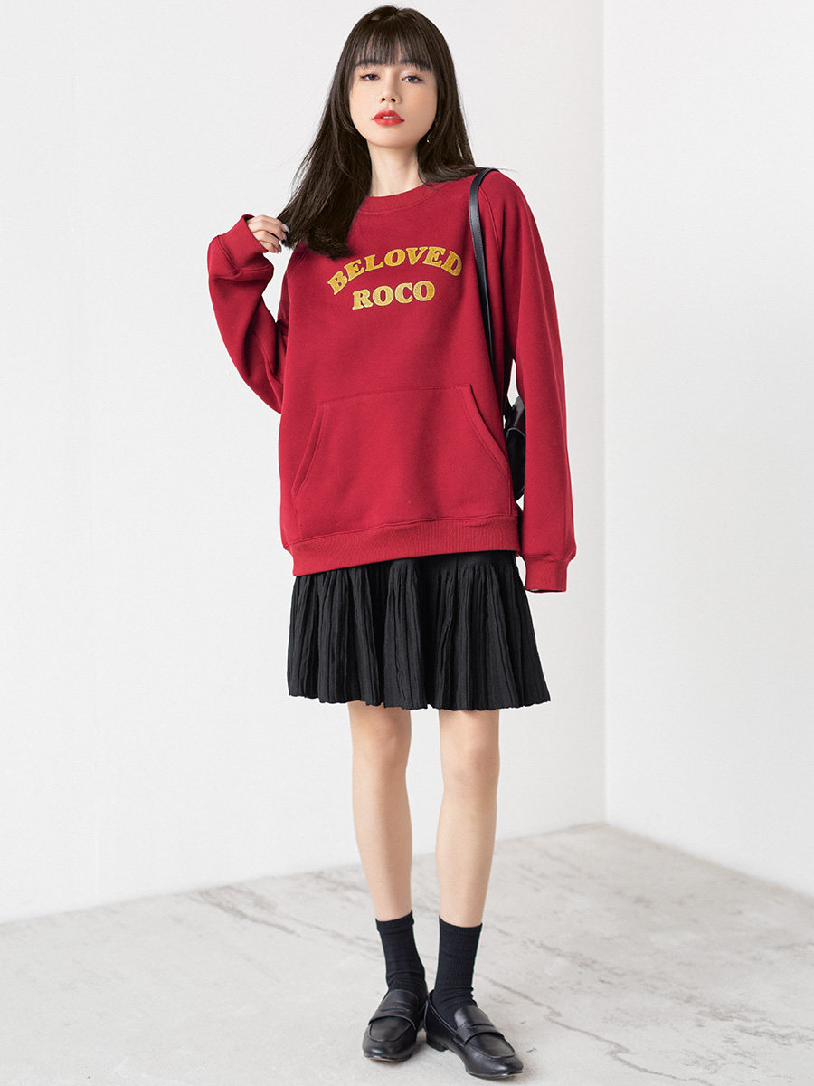 Ретро красная цветная элитная утепленная весенняя осенняя толстовка с круглым воротником, 2022 года