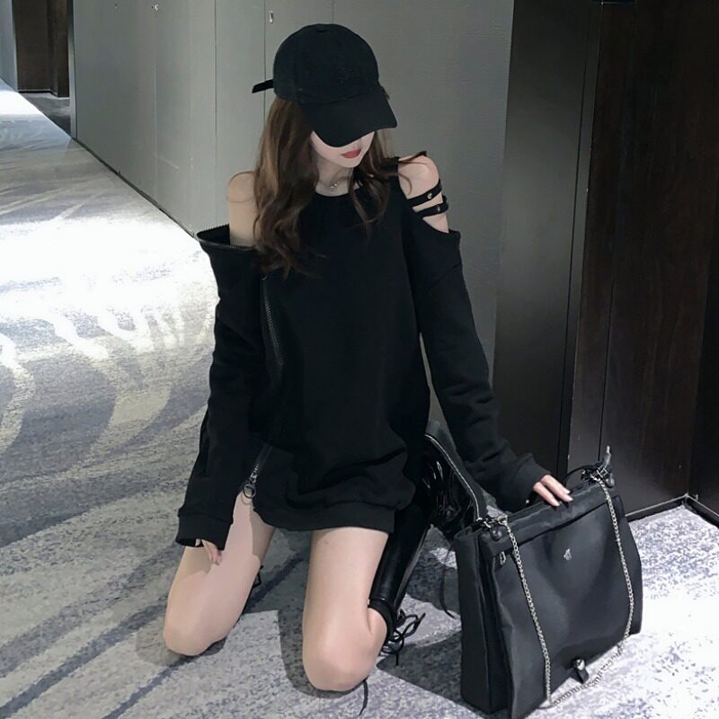 Весенний лонгслив с молнией, длинная брендовая толстовка, в западном стиле, свободный крой, средней длины