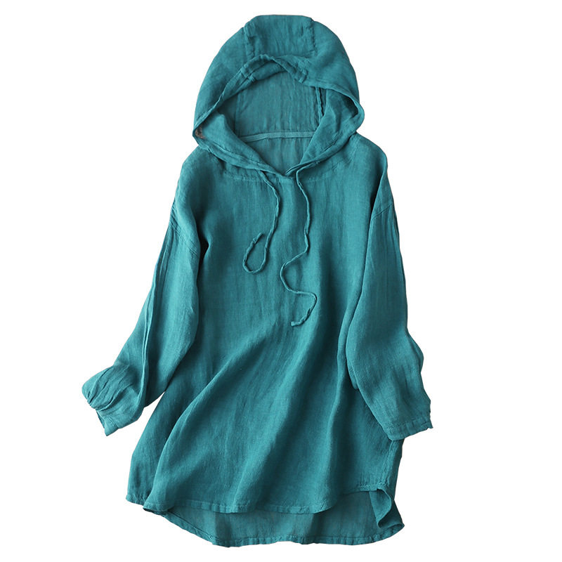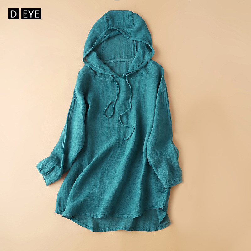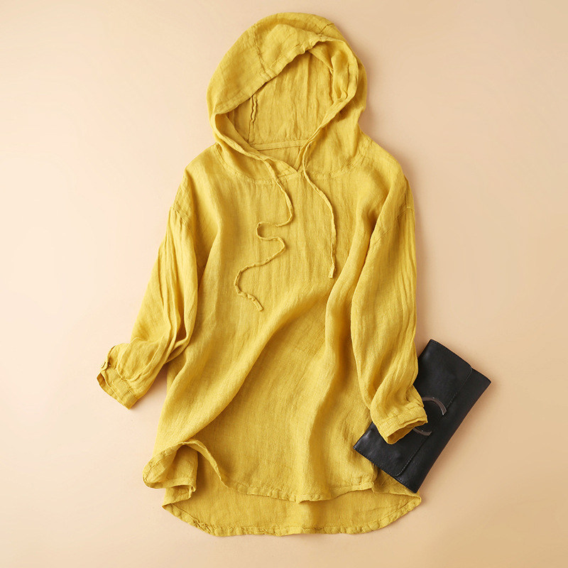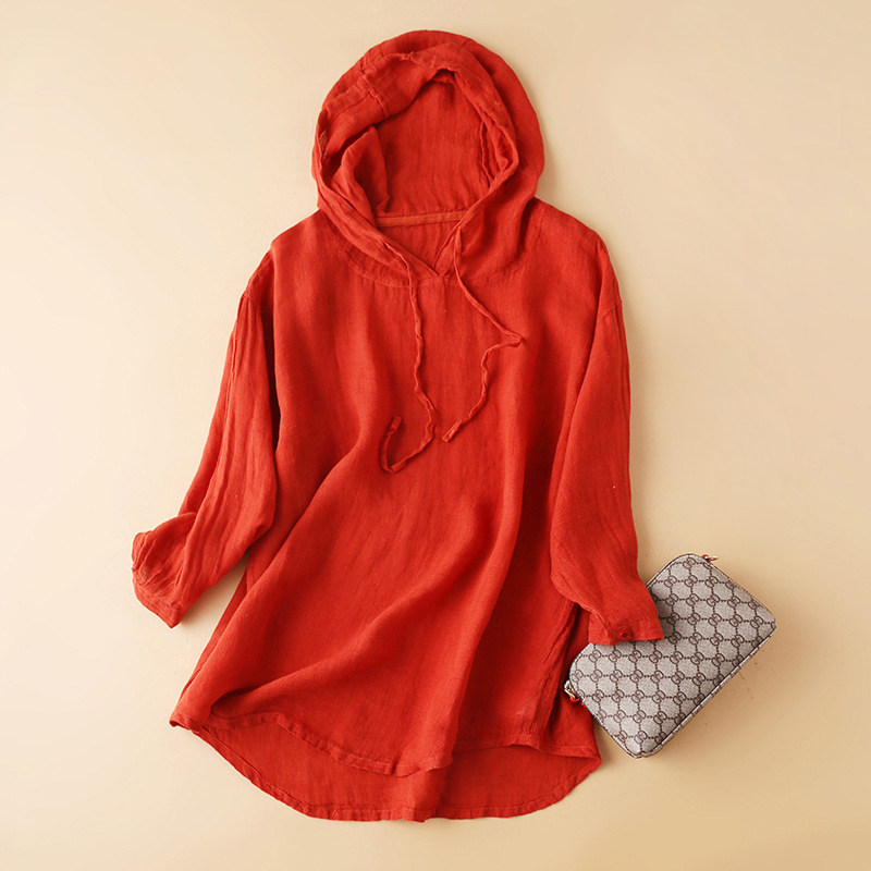 Футболка с капюшоном, весенний летний лонгслив, толстовка с капюшоном, комплект, 2021 года, из хлопка и льна