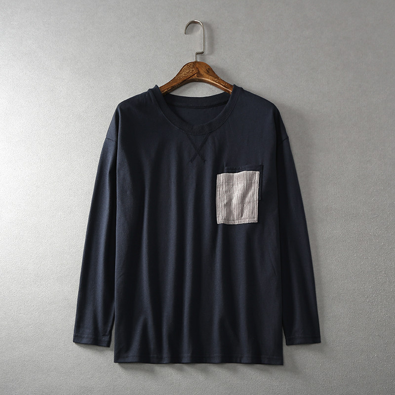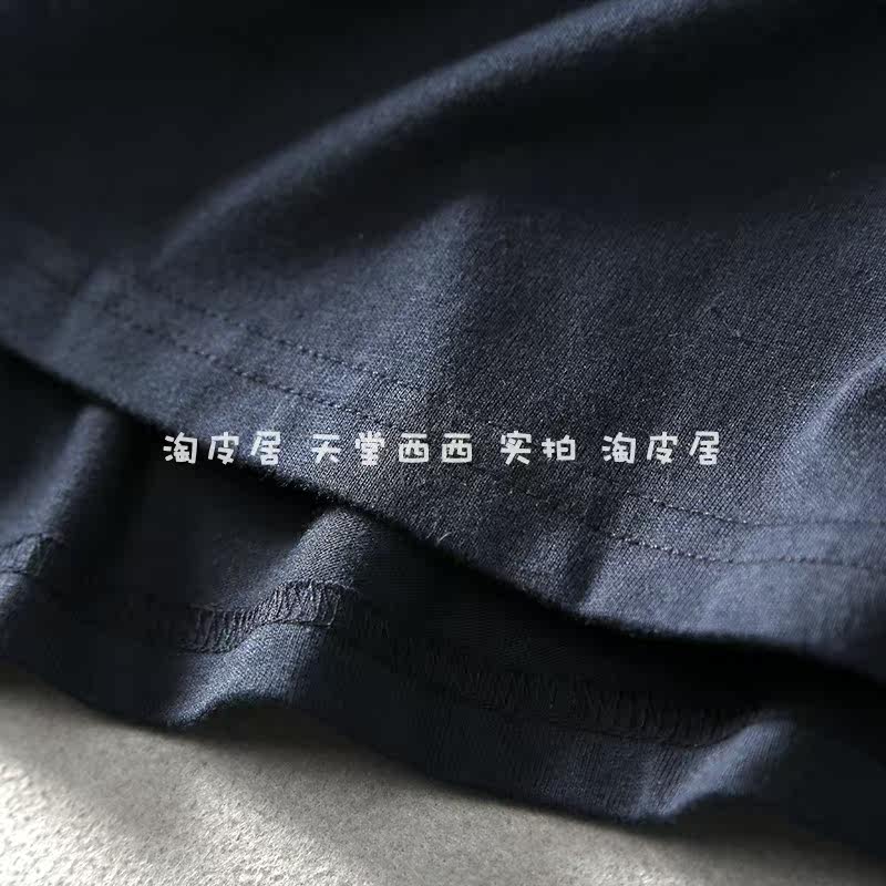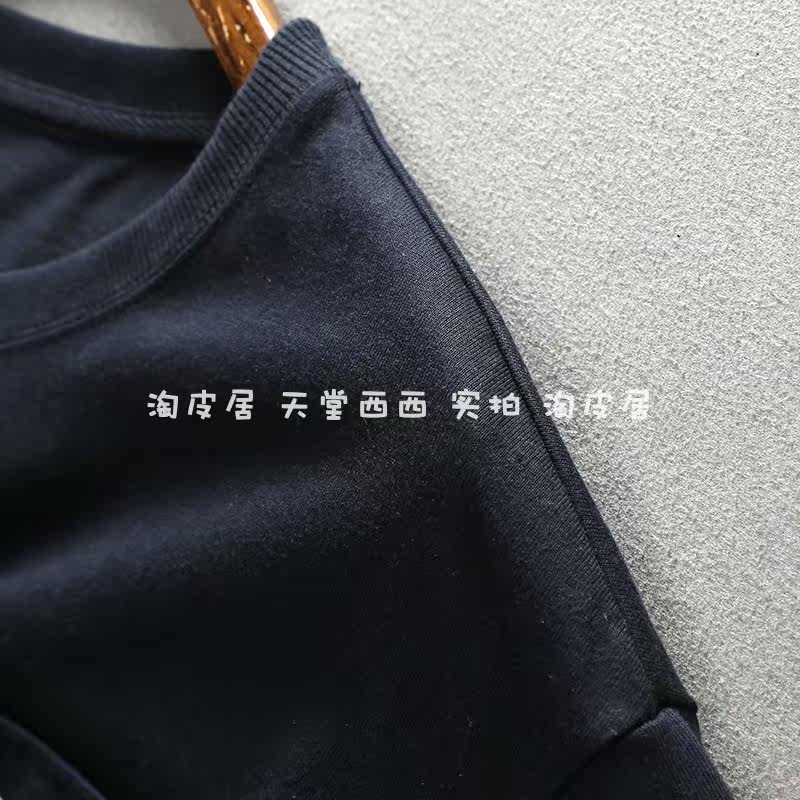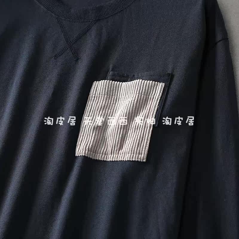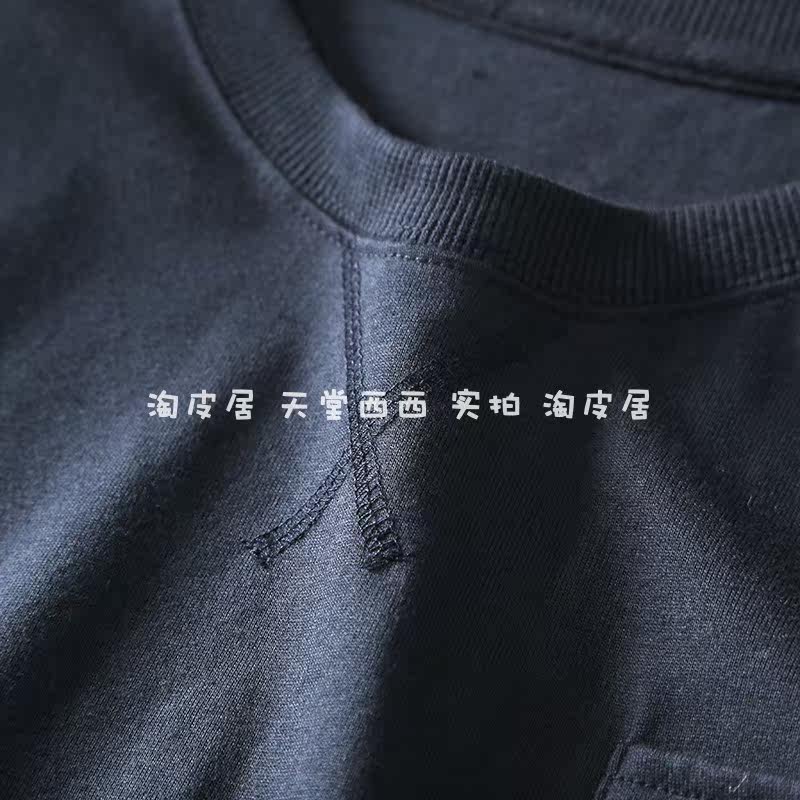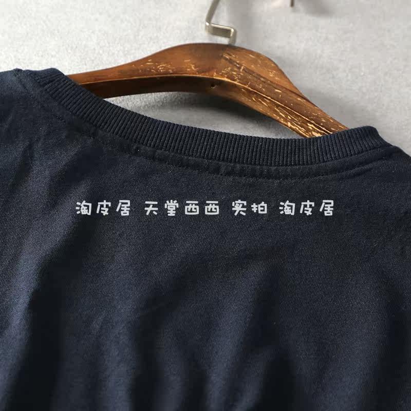 11116 Японский сингл ~ Литературная и художественная наложенная карманная круглая шея свободная девятиточечная футболка из рукава топ для женщин лето 0,26