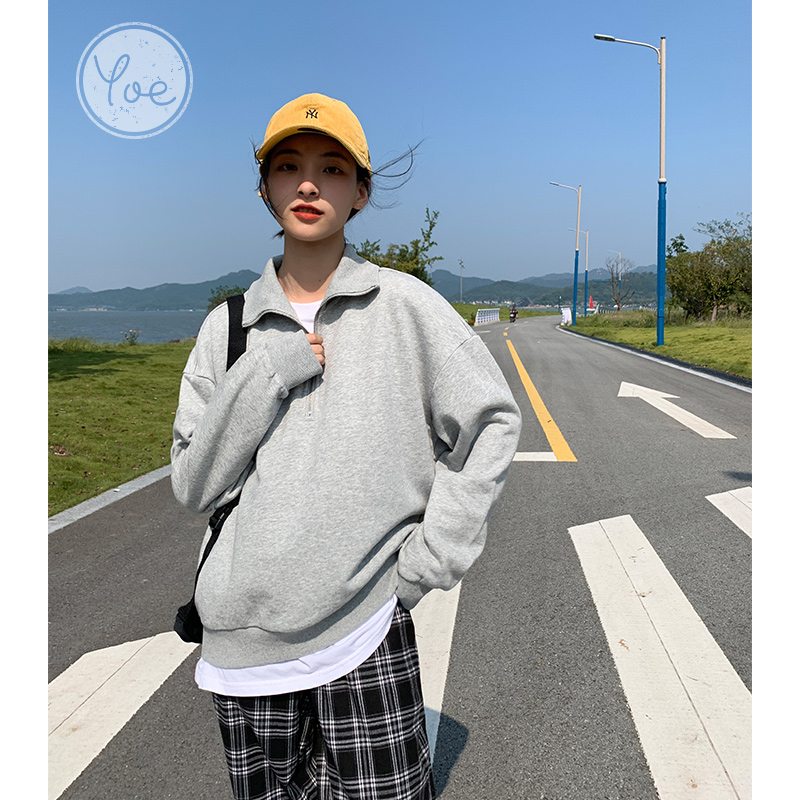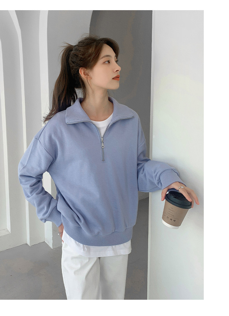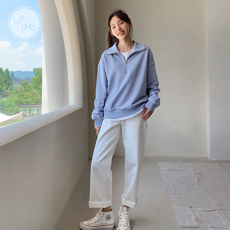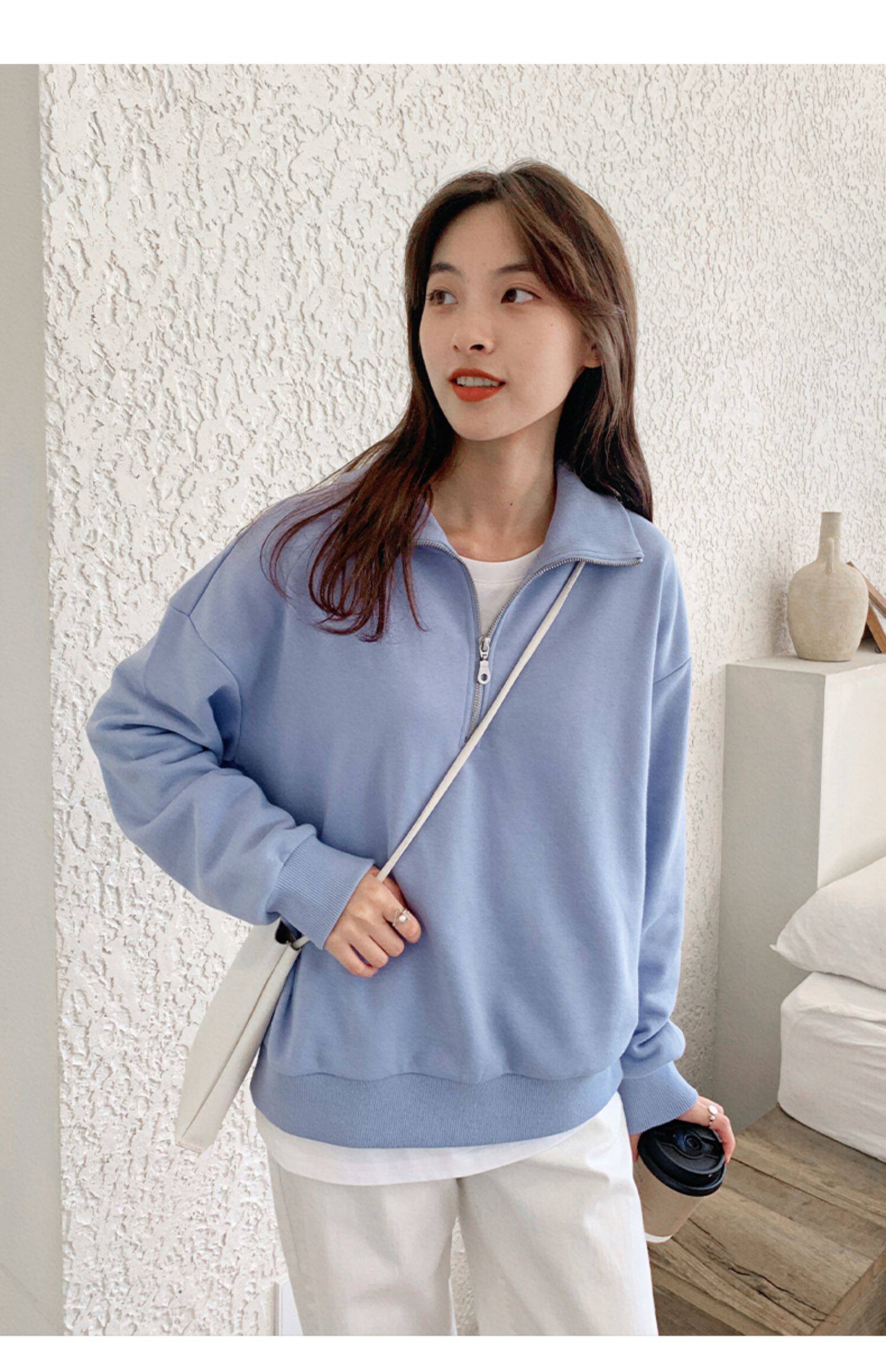 Синяя осенняя модная утепленная толстовка с молнией, на молнии, в корейском стиле, подходит для подростков, в американском стиле