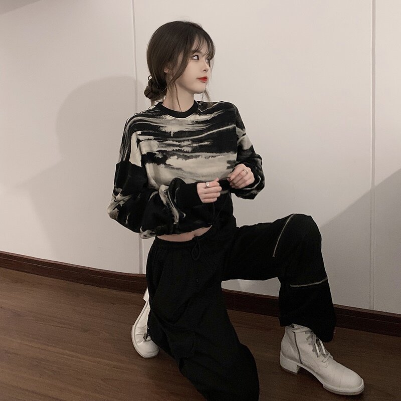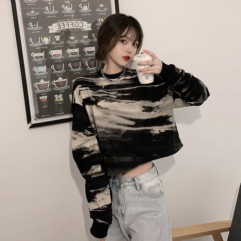 Осенний короткий свитшот, лонгслив, коллекция 2023, оверсайз, большой размер