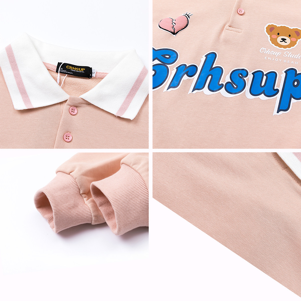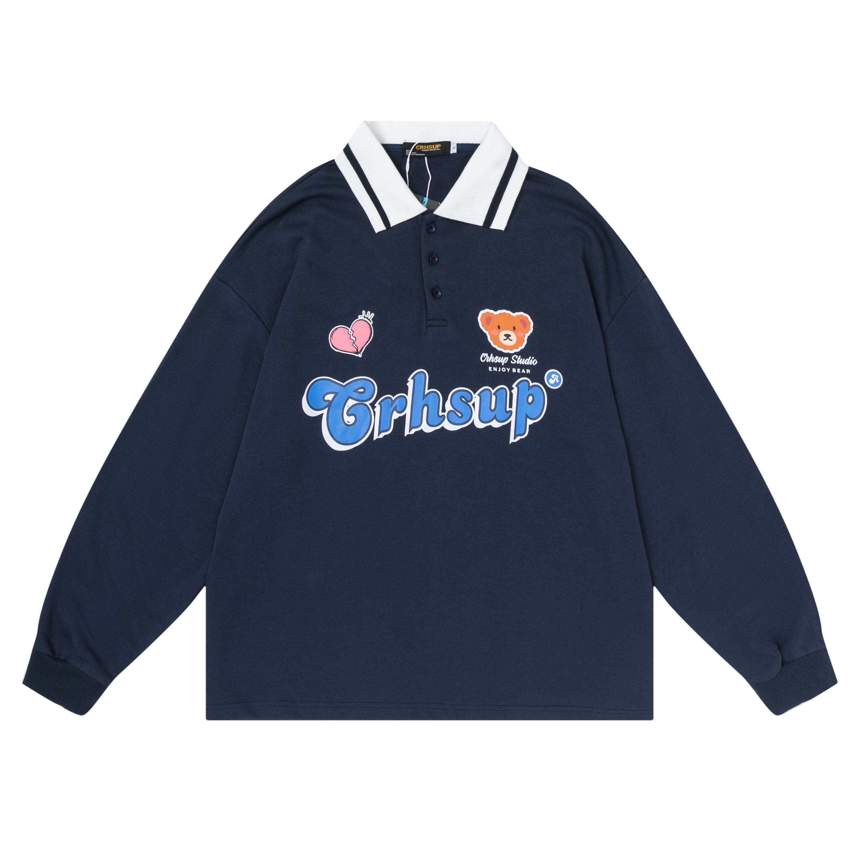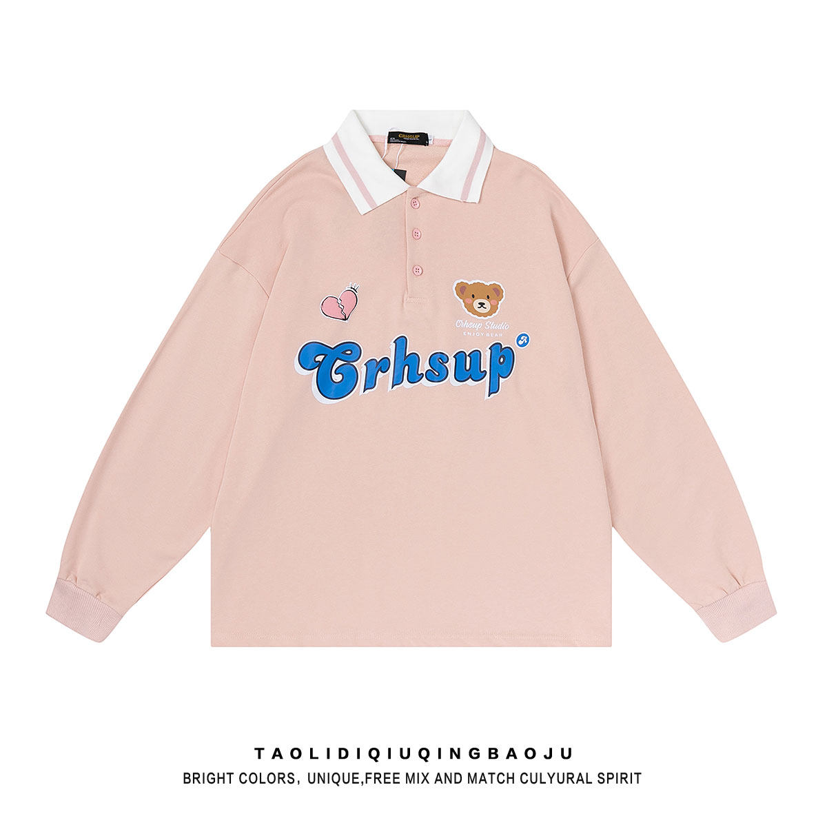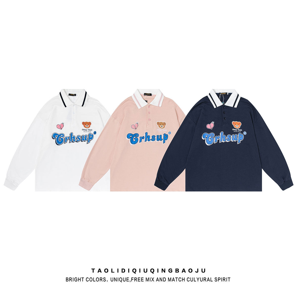 Tide, японская милая толстовка, с медвежатами, свободный крой, воротник поло, для влюбленных