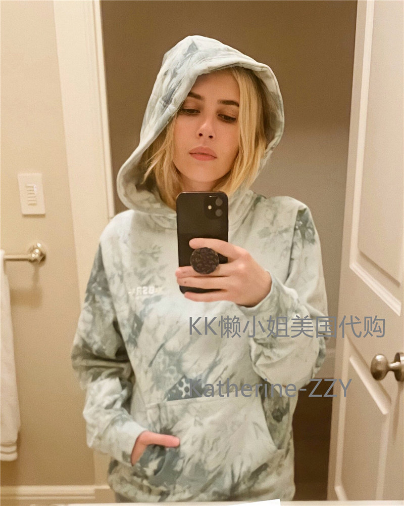 Американская покупка Эмма Робертс Эмма Робертс -стрит ул. Повседневался тот же зеленый галстук -под капюшоном с капюшоном -