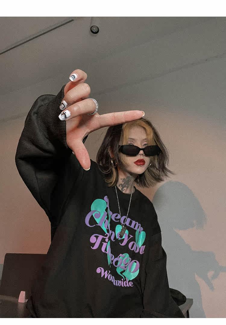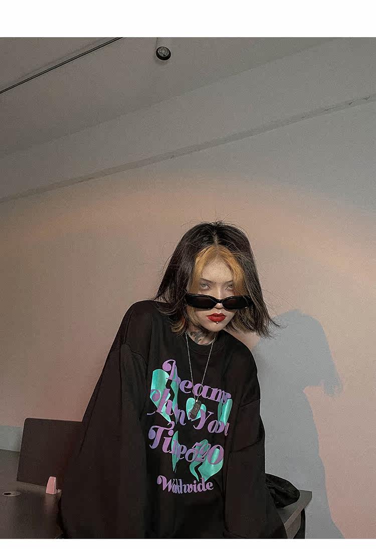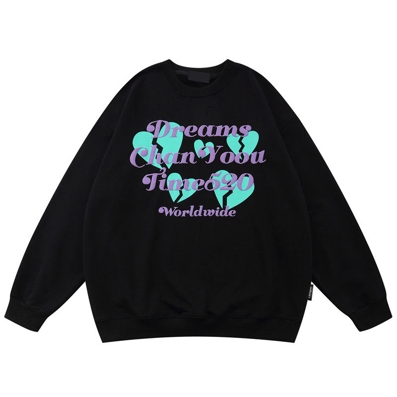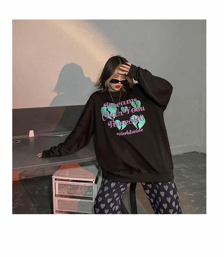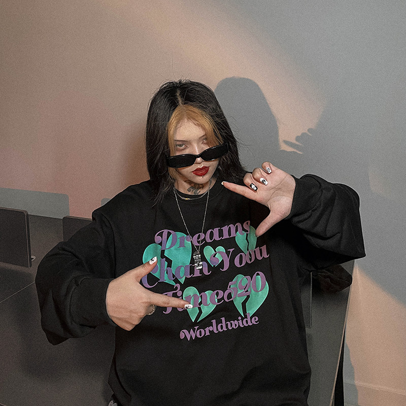 Черная осенняя тонкая толстовка с круглым воротником, в американском стиле, оверсайз