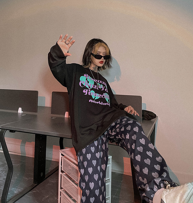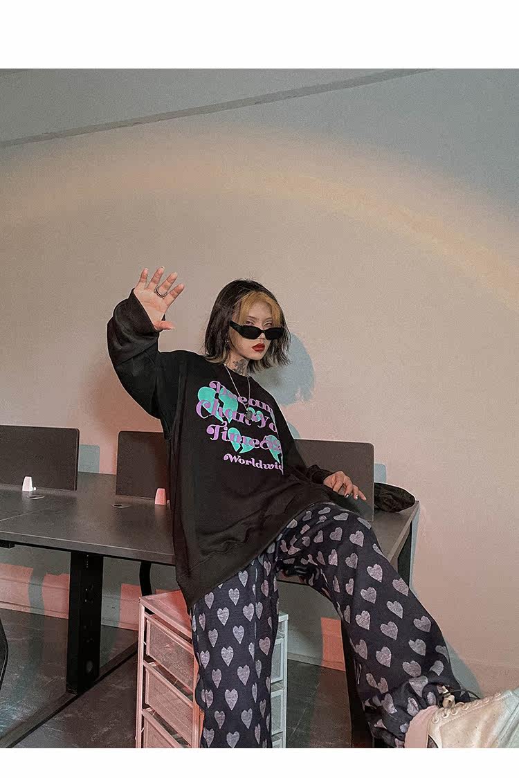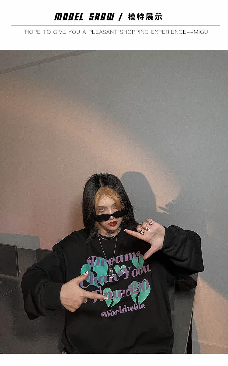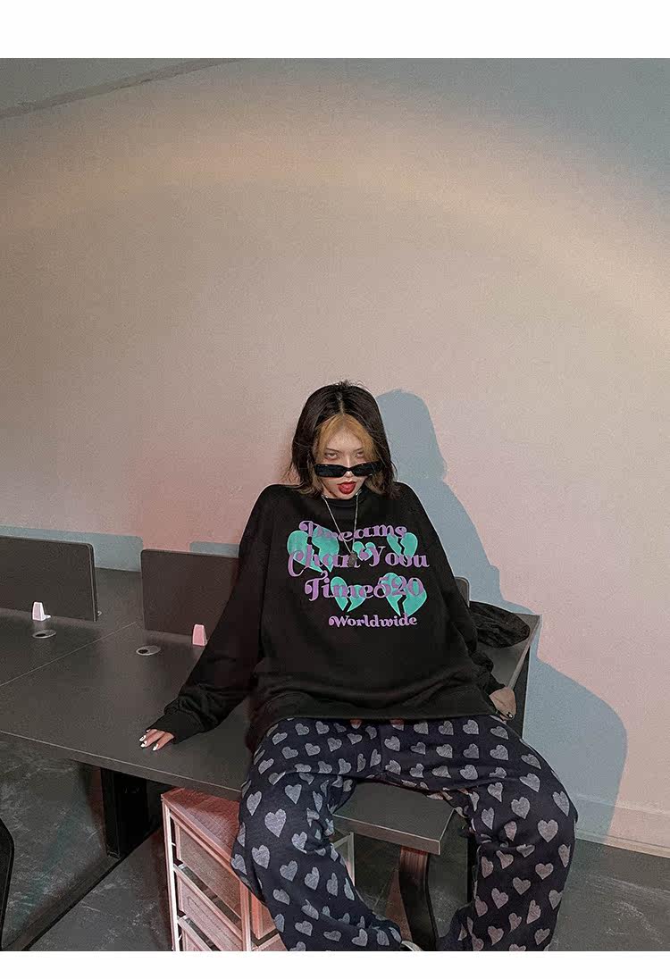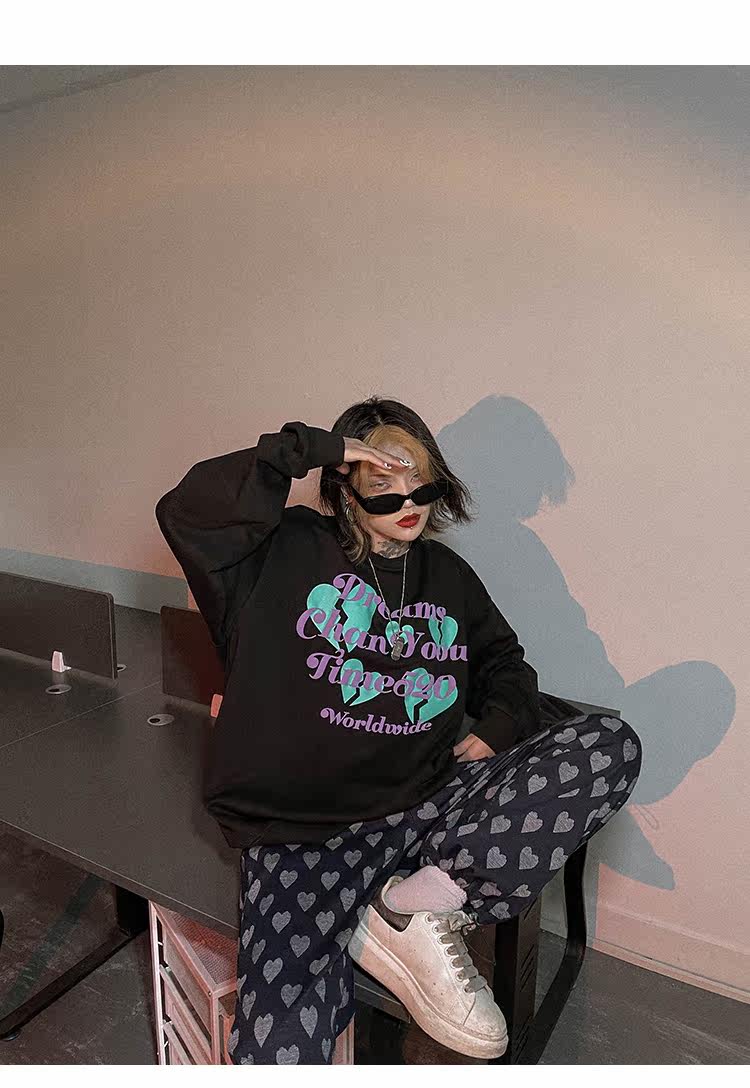 Черная осенняя тонкая толстовка с круглым воротником, в американском стиле, оверсайз