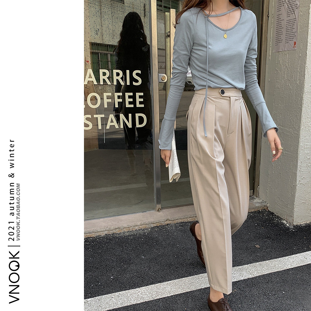 Осенний тонкий лонгслив, дизайнерский трикотажный свитер, коллекция 2021, в корейском стиле, тренд сезона